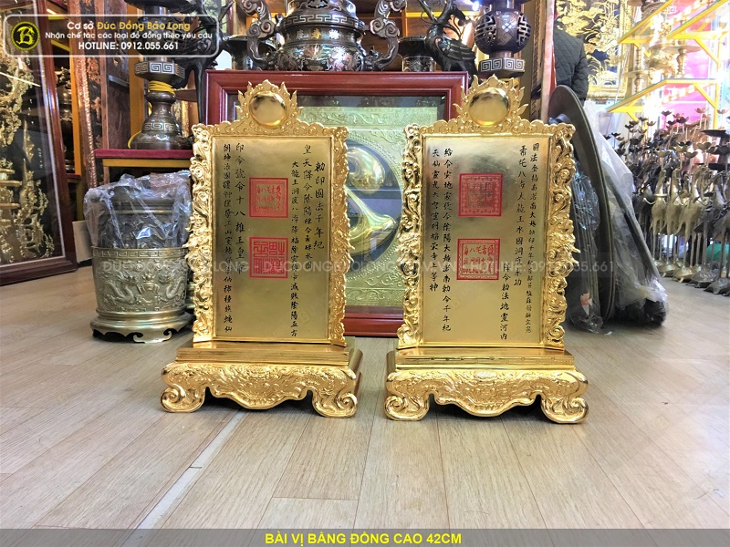 Lựa chọn bài vị thờ bằng đồng cũng như những sản phẩm bằng đồng khác tại Bảo Long như: hoành phi câu đối bằng đồng, tượng đồng, quà tặng bằng đồng,… khách hàng sẽ hoàn toàn hài lòng bởi các sản phẩm luôn được kiểm tra kỹ lưỡng trước khi xuất xưởng cùng với giá thành hợp lý và tương xứng với công sức những người nghệ nhân đã thực hiện.