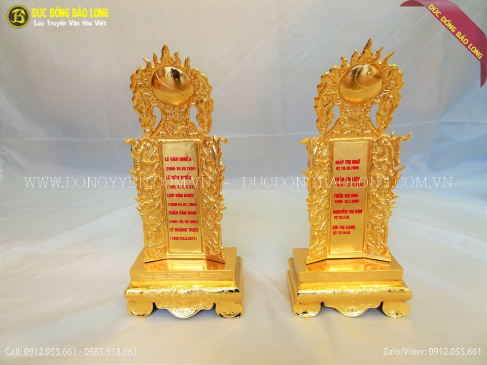 Bài vị bằng đồng mạ vàng 24k