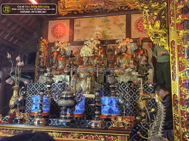 Và pho tượng Ngô Quyền bên dưới cùng và tại chính điện bao gồm 7 pho tượng