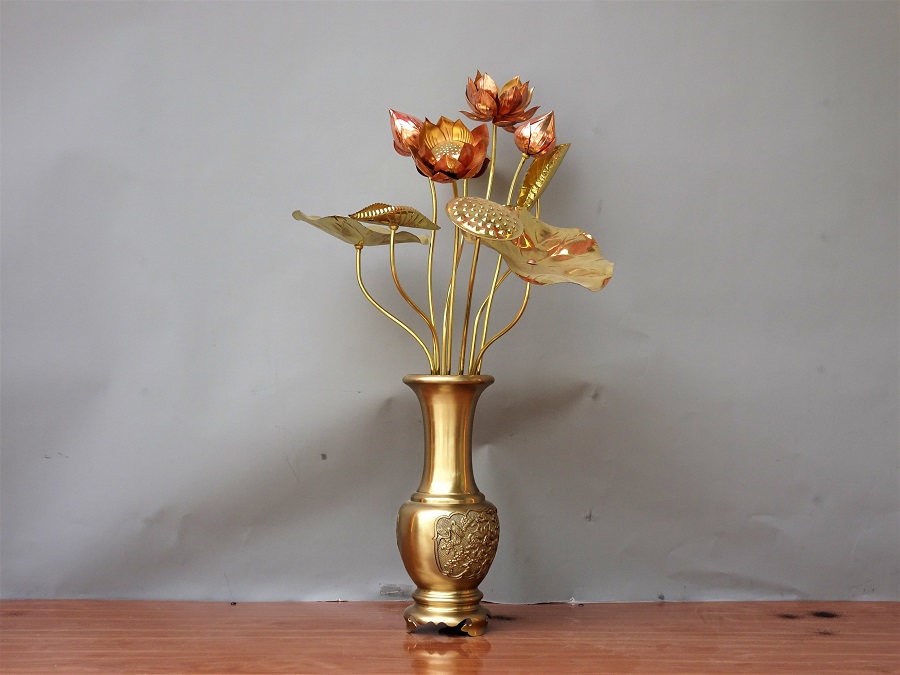 Tất cả các mẫu bó hoa sen bằng đồng, đồ thờ cúng, vật phẩm phong thủy... đều được chế tác thủ công với nguyên liệu đồng tinh khiết. Đúc, tạc với hoa văn cầu kì, sắc nét. Bảo Long luôn cam kết tuân thủ quy trình, không chạy theo thị trường, giảm bớt nguyên liệu hạ giá thành. Chất lượng hơn số lượng.