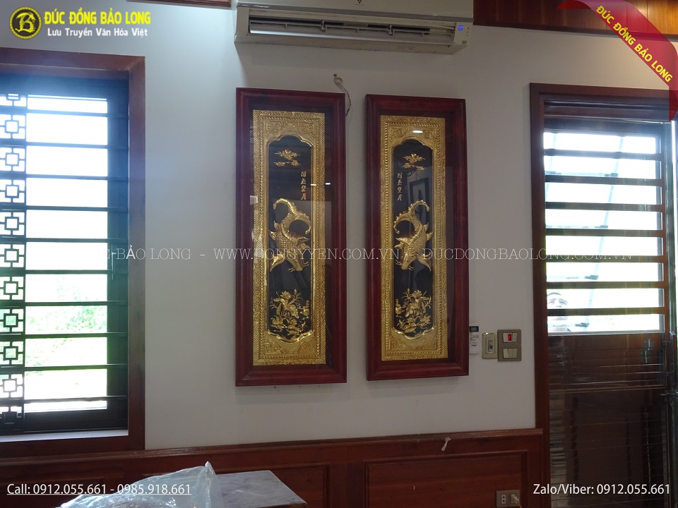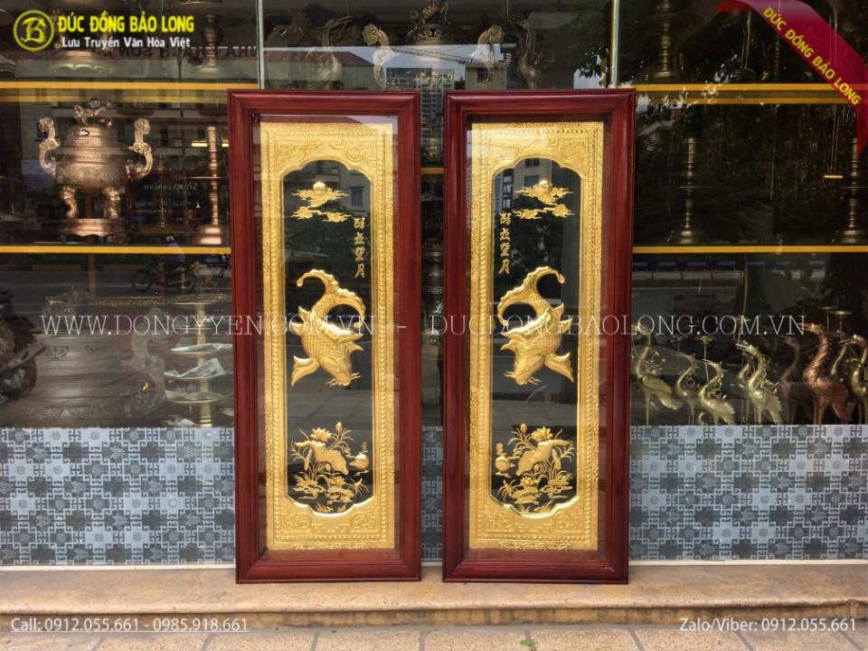 Tranh lý ngư vọng nguyệt được chạm hoàn toàn thủ công từ đồng vàng nhập khẩu Hàn Quốc