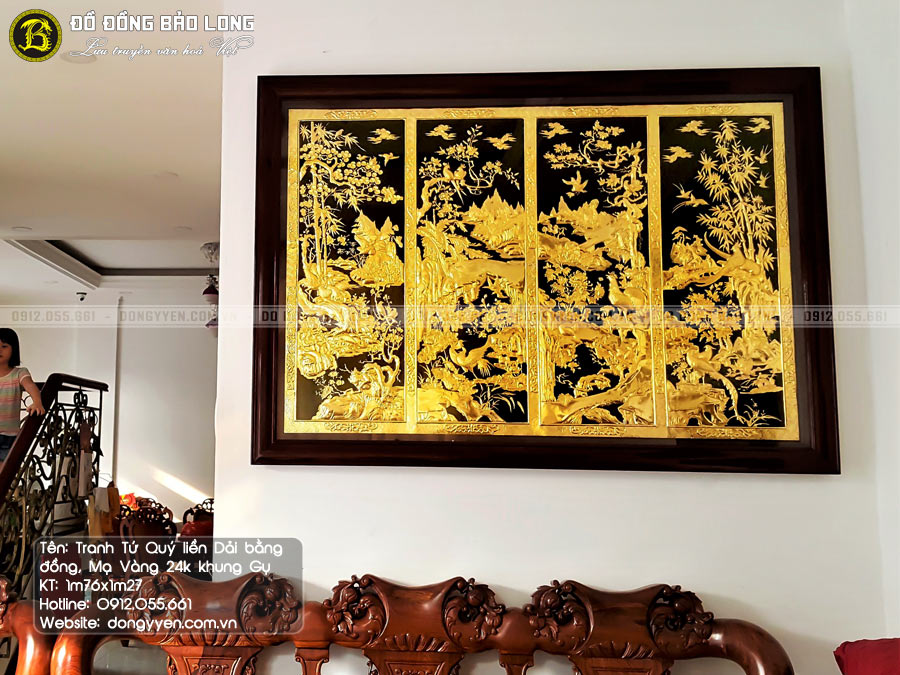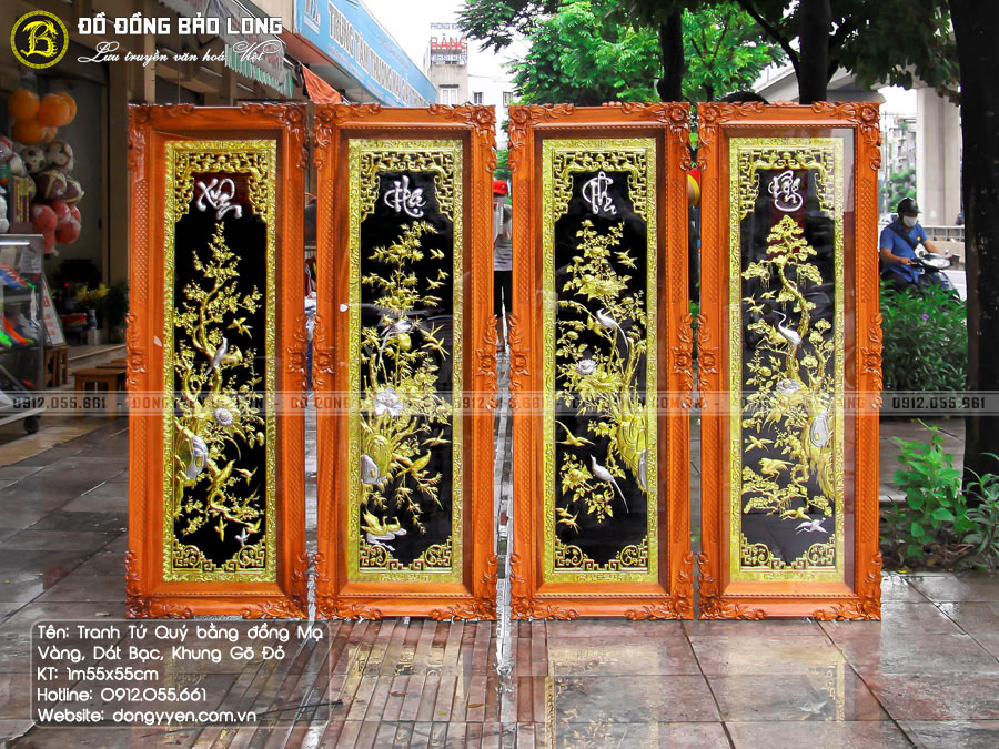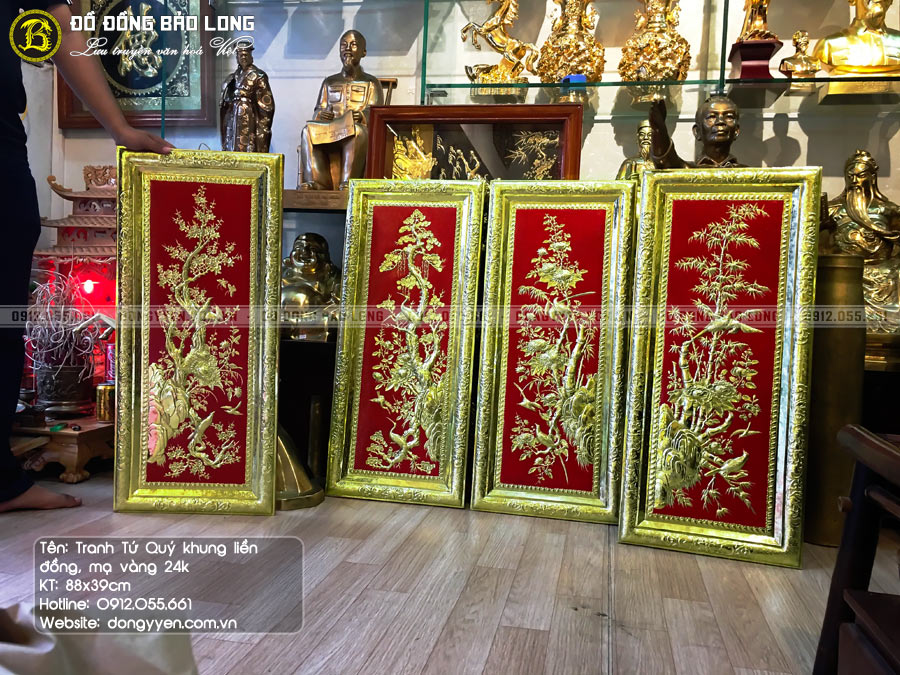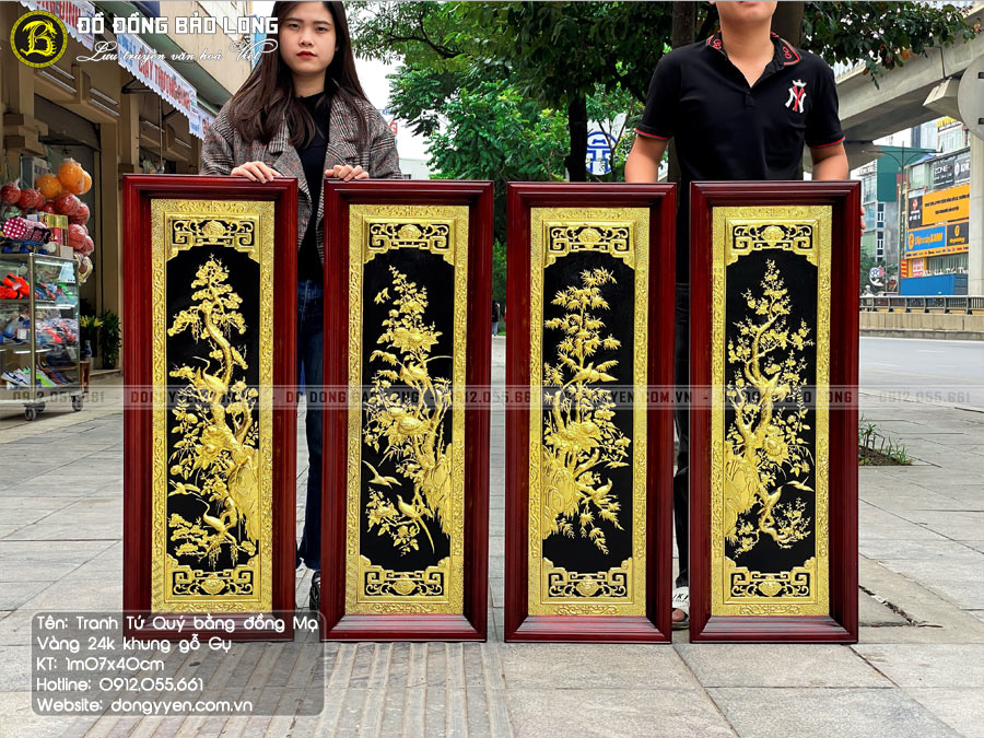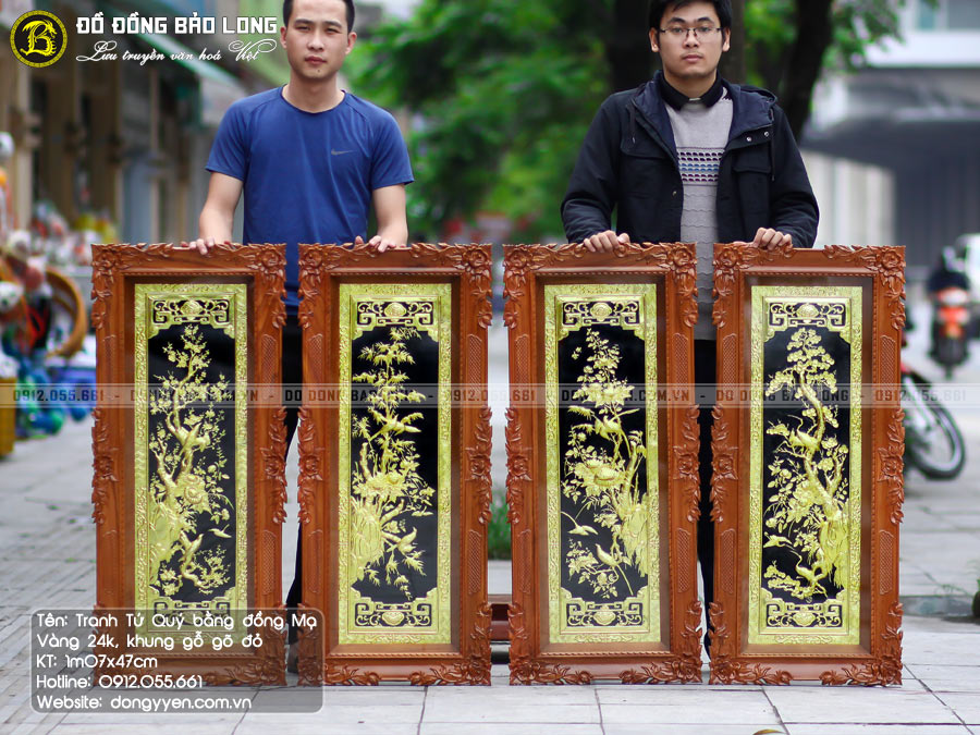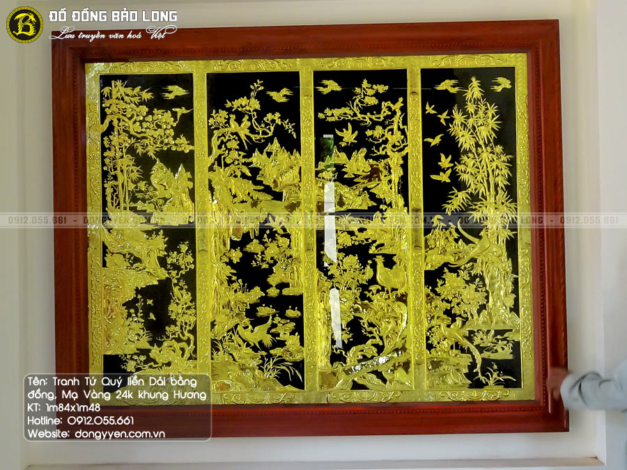 Tranh Đồng Tứ Quý mạ vàng 24k khung gỗ đục tân cổ điển