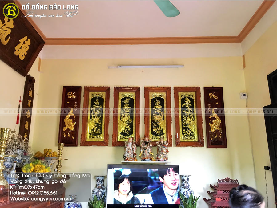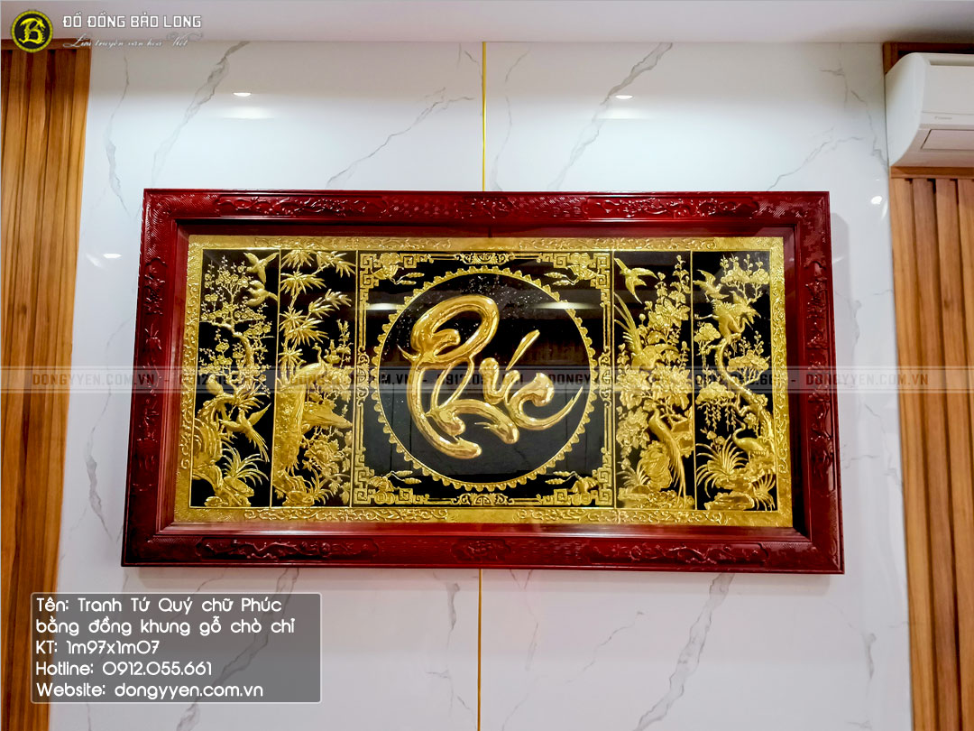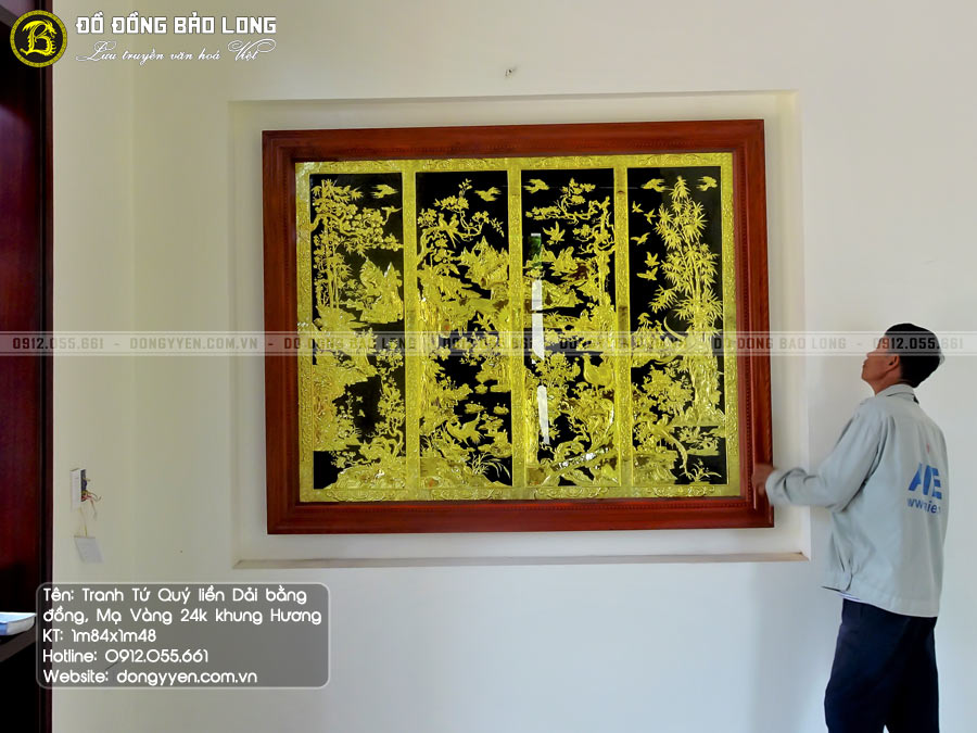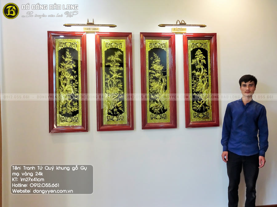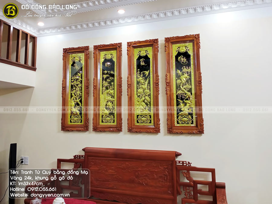 Tranh Đồng Tứ Quý mạ vàng 24k khung gỗ đục tân cổ điển