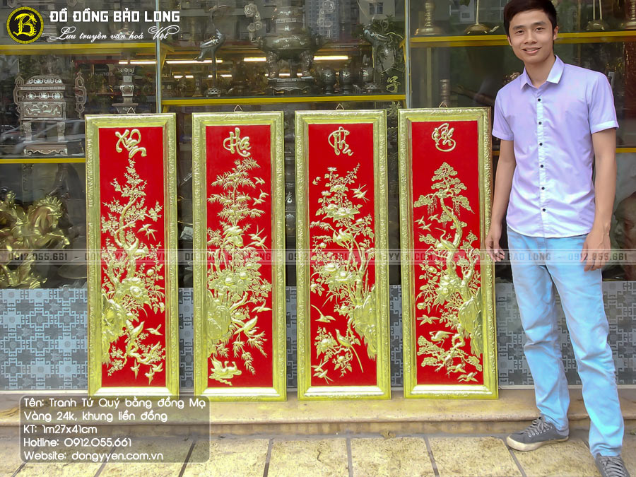 Bốn bức tranh tứ quý bằng đồng mạ vàng 24k cực đẹp