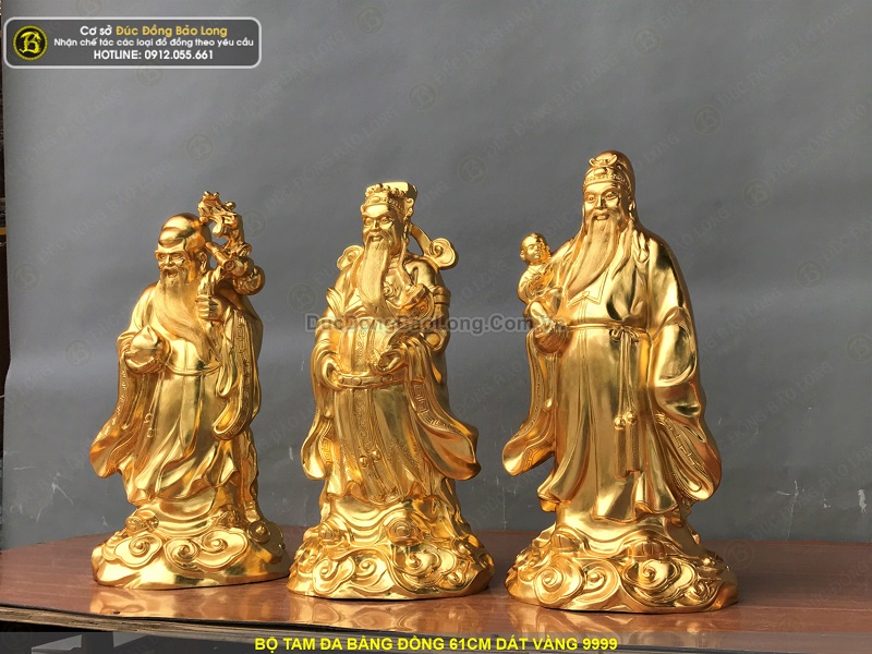 – Tượng Tam Đa bằng đồng mạ vàng có kích thước cao 36cm, 42cm: giá dao động từ 21tr đến 33tr/pho