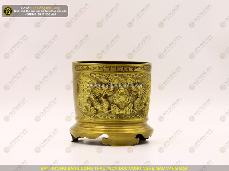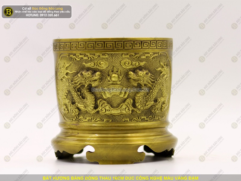 Chi tiết sản phẩm bát hương bằng đồng thau 16cm đúc công nghệ màu vàng đậm