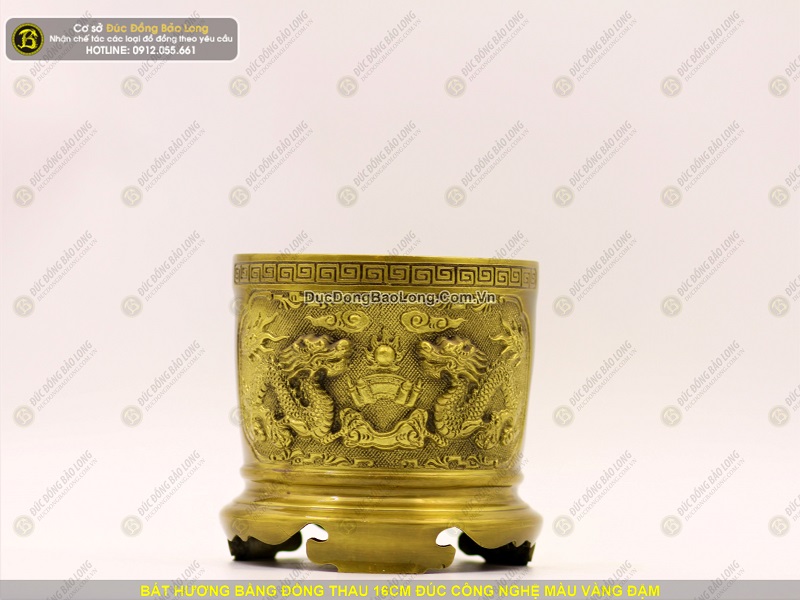 Bát hương bằng đồng thau 16cm đúc công nghệ màu vàng đậm thuộc phân khúc hàng giá rẻ nhất hiện nay. Tuy nhiên, điểm nột bật của sản phẩm chính là sự bắt mắt, mẫu mã cực đẹp và giá vô cùng hợp lý.