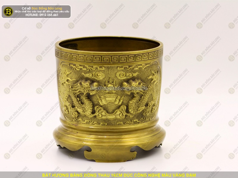 Bát hương bằng đồng thau 16cm đúc công nghệ màu vàng đậm