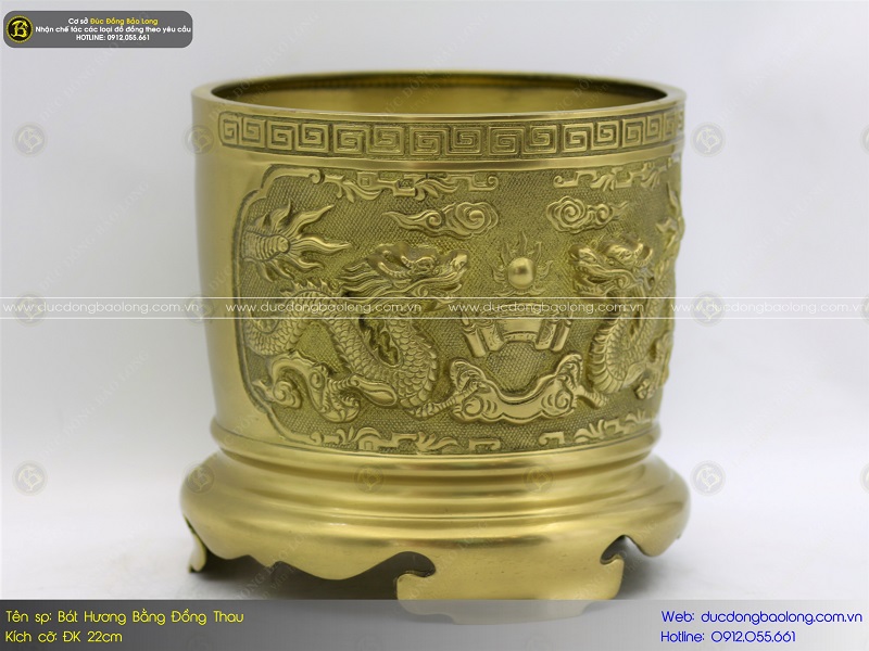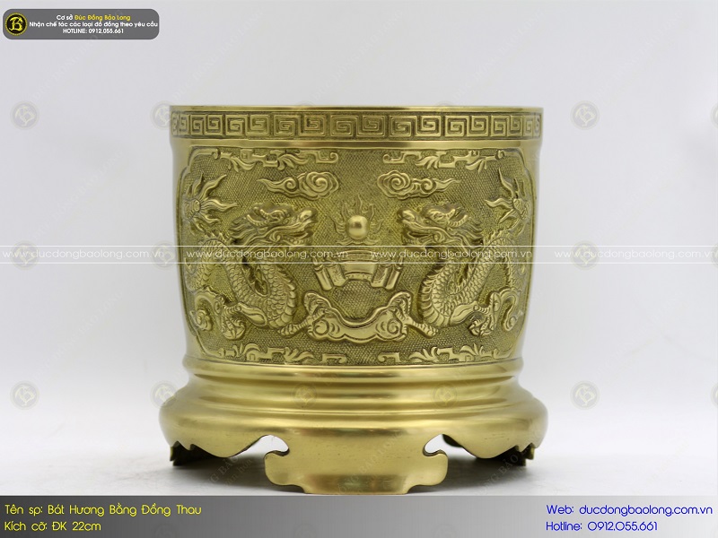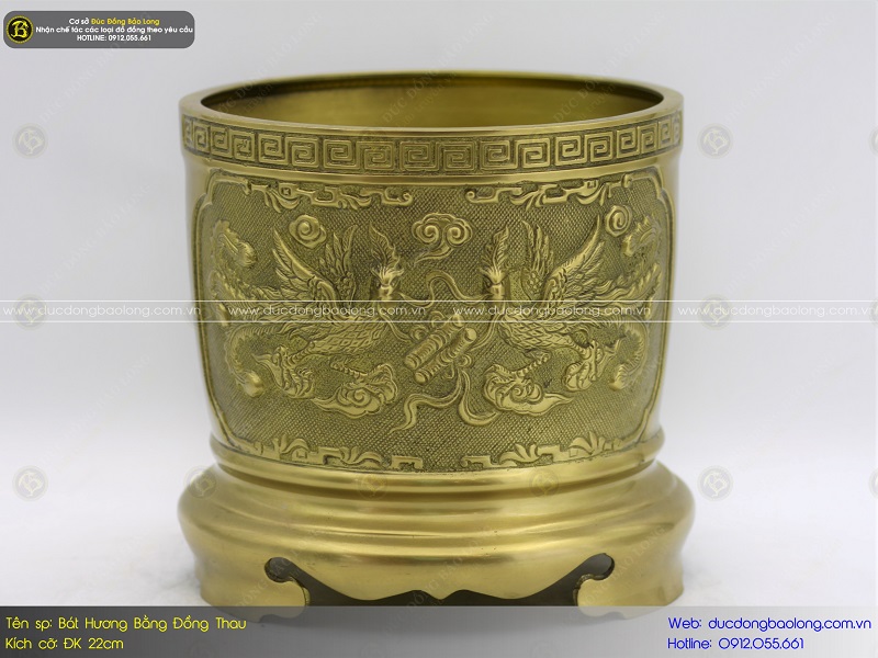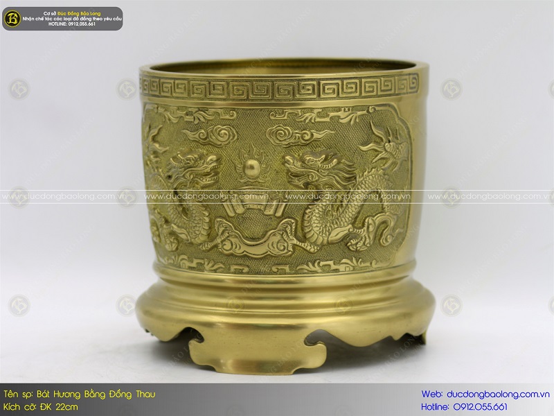 Bát hương bằng đồng thau 22cm màu mộc thuộc phân khúc hàng phổ thông. Tuy nhiên, điểm nột bật của sản phẩm chính là sự bắt mắt, mẫu mã cực đẹp và giá vô cùng hợp lý.