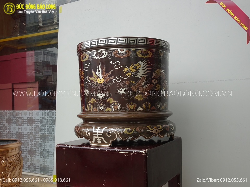 Bát hương bằng đồng khảm ngũ sắc cao cấp cao 42cm