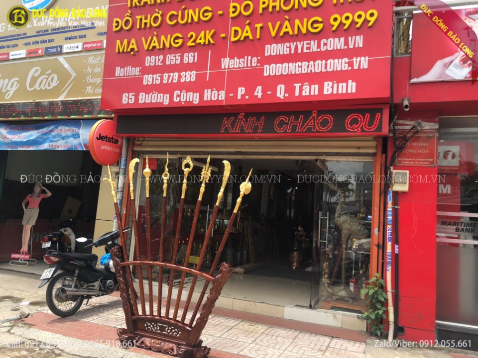 Hiện tại cơ sở Đúc Đồng Bảo Long có nhiều showroom trưng bày và bán hàng, với uy tín của chúng tôi, hiện này chúng tôi đã được khách hàng trong cả nước cũng như nước ngoài đặt mua rất nhiều sản phẩm qua kênh COD (khách hàng nhận hàng và thanh toán tiền mặt) vì vậy quý khách hàng có nhu cầu sở hữu những Bộ Bát Bửu Bằng Đồng như thế này hãy liên hệ ngay cho chúng tôi. Xin cảm ơn!