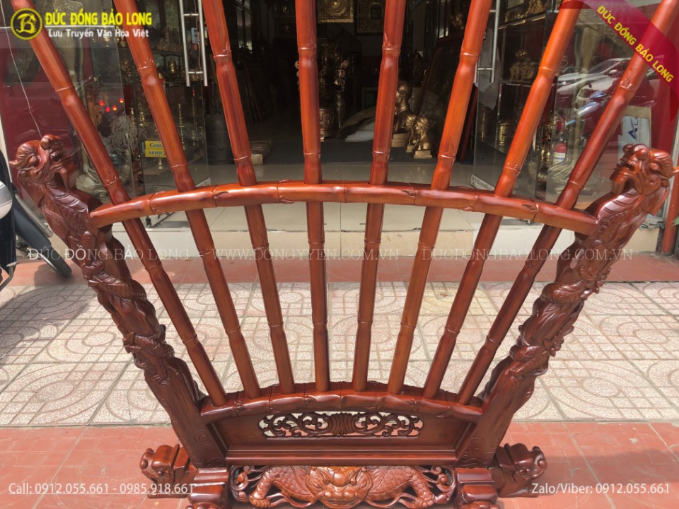 Bộ bát bửu này có kích thước 2m17. Ngoài ra, Bảo Long còn nhiều bộ bát bửu khác từ kích thước nhỏ nhất để trưng bày tại phòng khách.