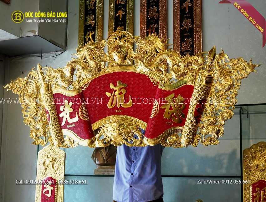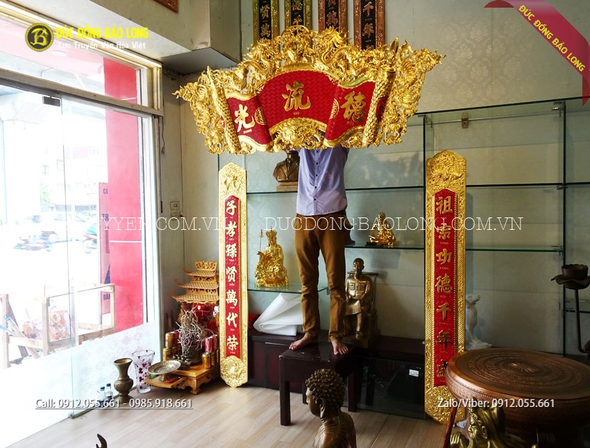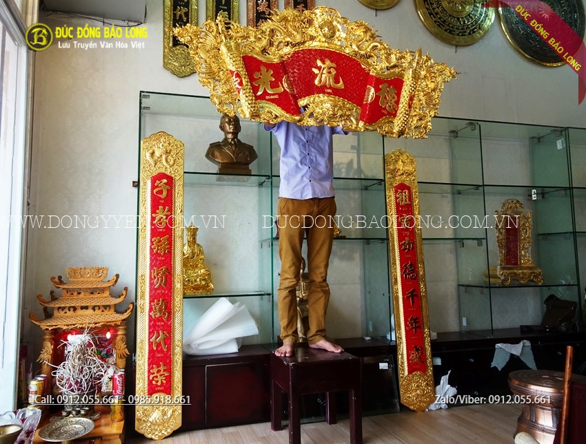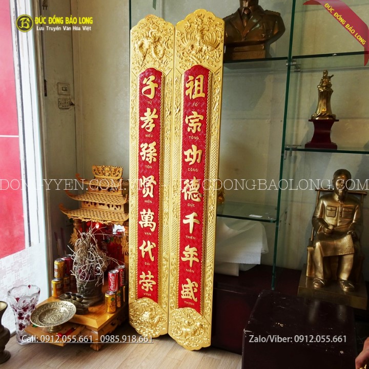 Bộ cuốn thư câu đối bằng đồng 1m76 mạ vàng 24k