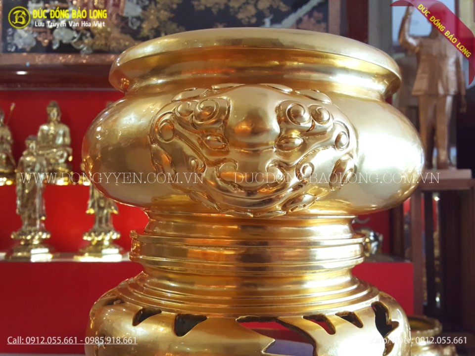 Qúy khách hãy cùng chúng tôi tìm hiểu và chiêm ngưỡng bộ đồ thờ bằng đồng dát vàng 9999 cao cấp nhất có giá trị rất lớn vì toàn bộ sản phẩm được dát vàng(loại vàng ta 9999). Bộ sản phẩm được Bảo Long chế tác theo đơn đặt hàng của một vị khách tại Sài Gòn.