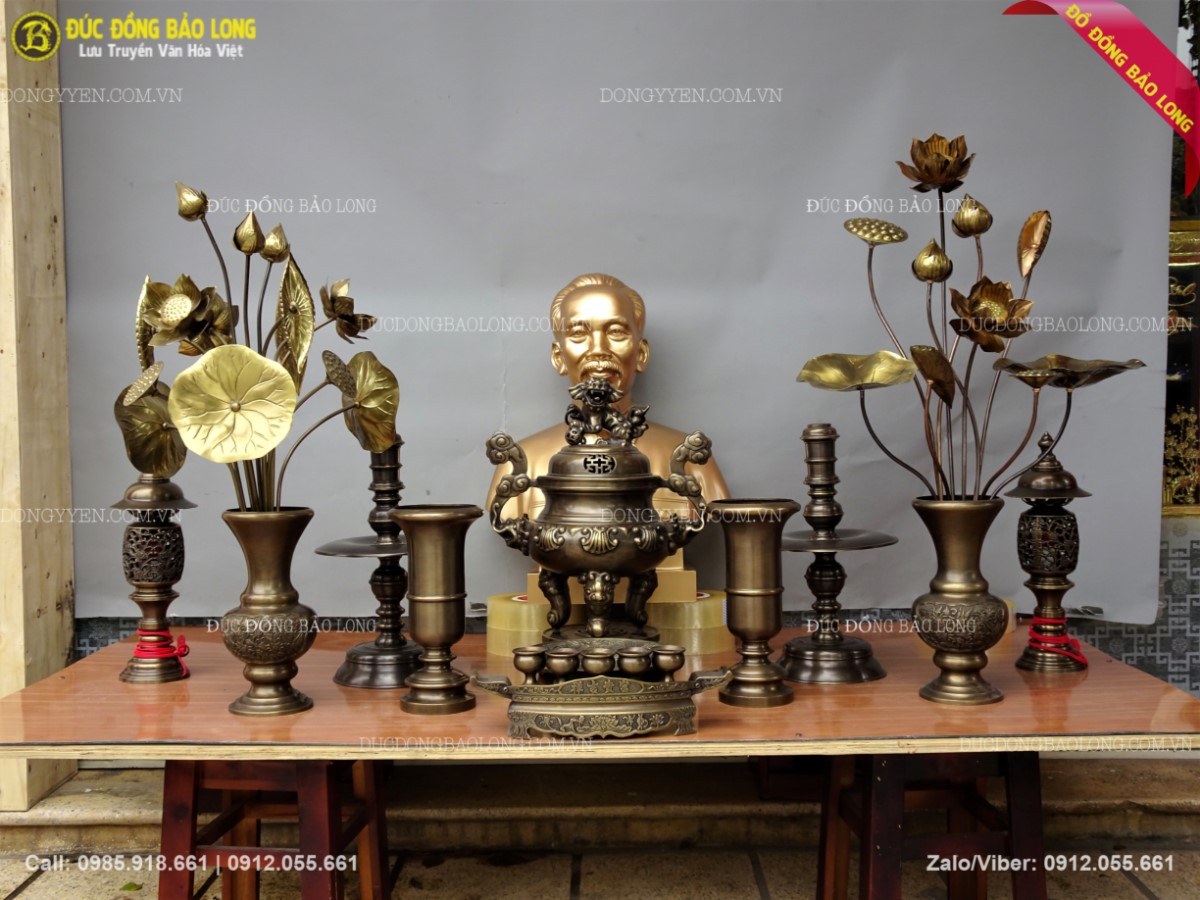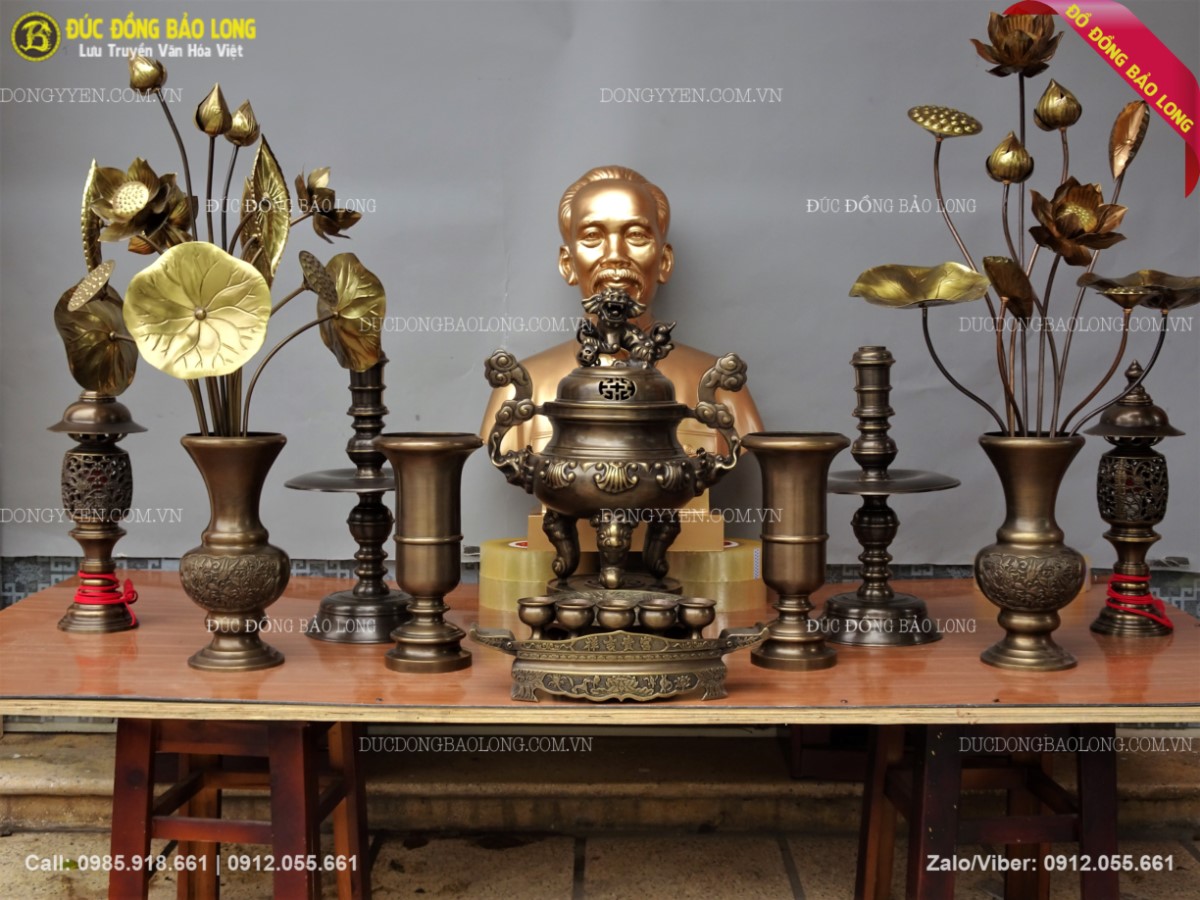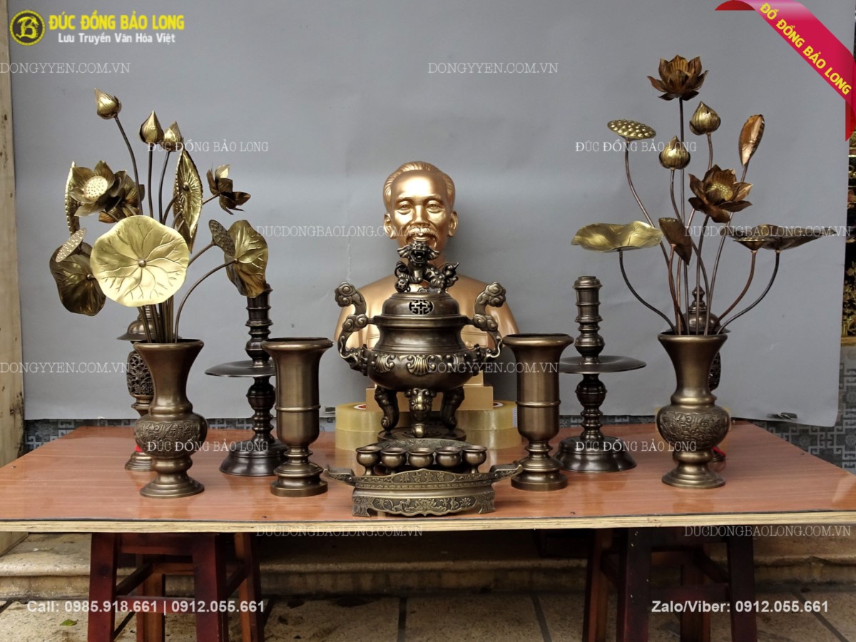 Bộ đồ thờ được đúc thủ công từ nguyên liệu đồng thau