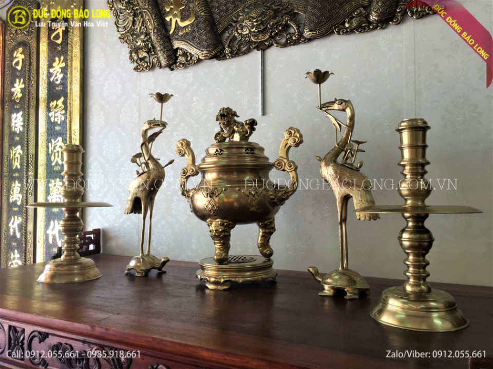 Bộ đồ thờ được đúc thủ công, giữ màu nguyên bản màu đồng thau
