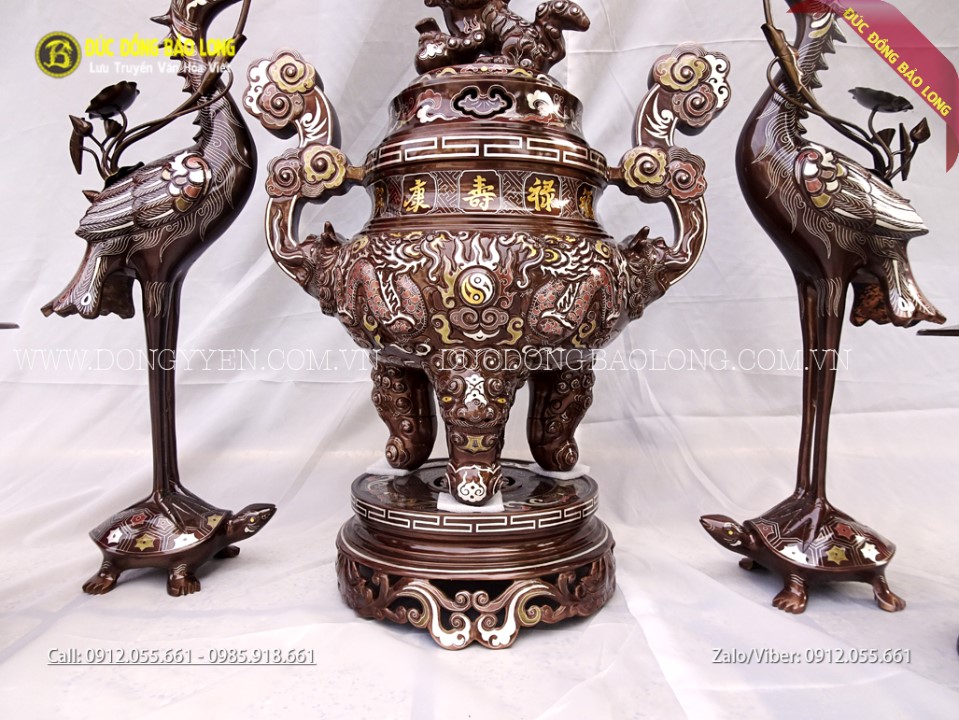 Bộ đồ thờ đúc nổi rồng phương khảm ngũ sắc