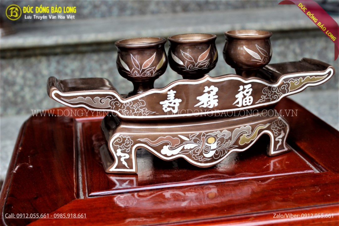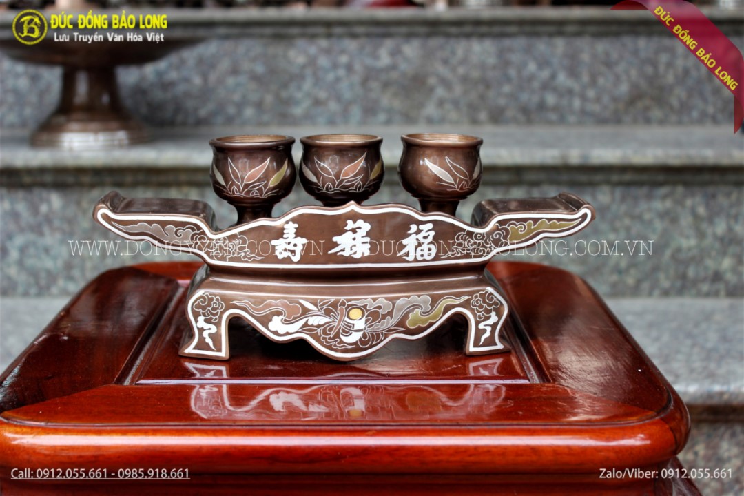 Bộ khay chén thường đi kèm với những bộ đồ thờ bằng đồng cùng loại. Qúy khách có thể tham khảo một số mẫu bộ khay 3 chén khác tại website của chúng tôi.