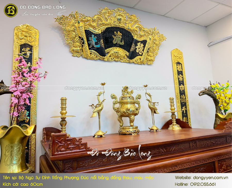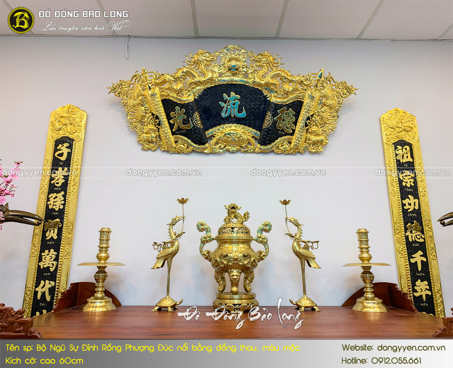 Bộ Ngũ sự đỉnh rồng nổi bằng đồng thau mộc 60cm