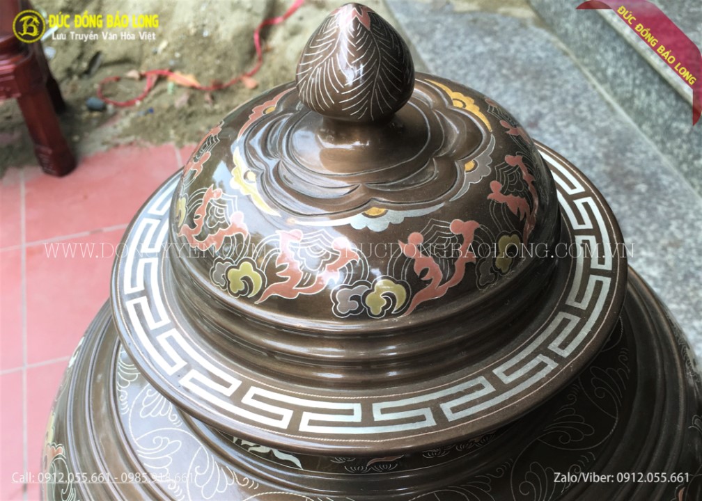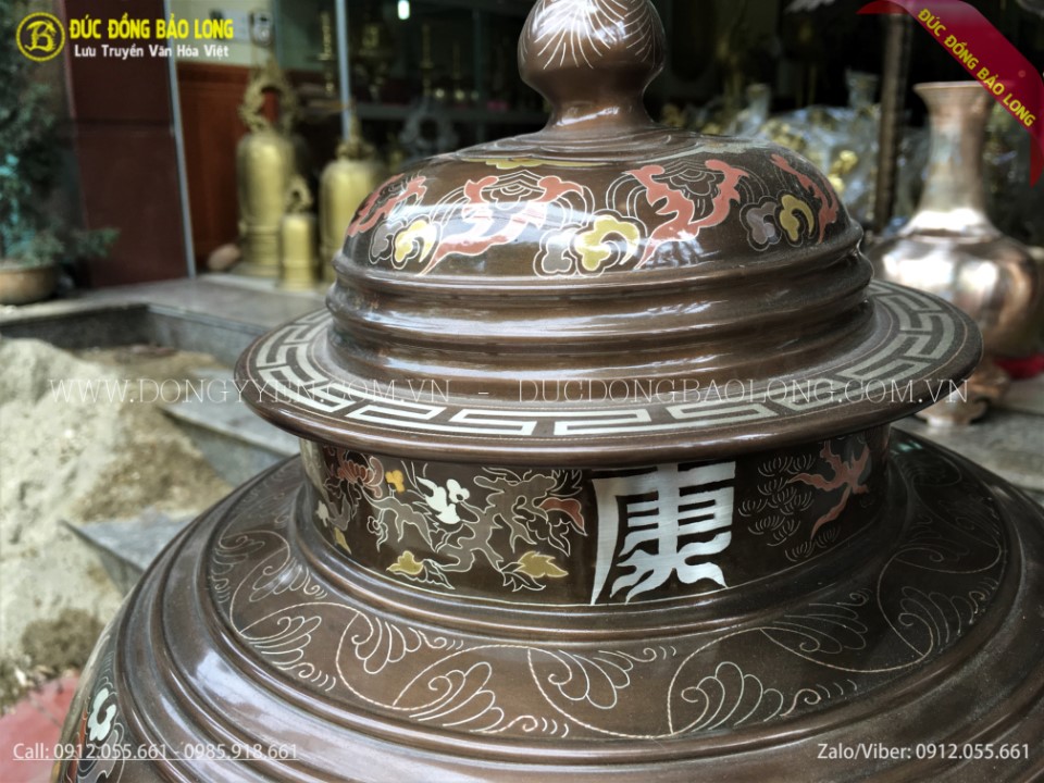 Chóe bằng đồng khảm ngũ sắc 60cm thuộc loại hàng cao cấp nhất hiện nay. Sản phẩm chạm hình tứ linh, cổ chóe có chạm chữ Thọ. Bộ chóe được đúc hoàn toàn thủ công theo phương pháp truyền thống, nguyên liệu đúc là loại đồng đỏ thanh khiết, đúc rất dày dặn. Quy trình đúc yêu cầu rất khắt khe, nghệ nhân cần có sự khéo tay, mài dũa, chạm rất tỉ mỉ, sắc nét. Bộ chóe được khảm ngũ sắc 5 màu (gồm vàng 9999, bạc, đồng đỏ, đồng xanh, đồng đen) cao cấp nhất. Sau khi làm màu xong thì bề mặt sản phẩm được phủ lớp 2k trong suốt giúp cho bề mặt cách ly với môi trường và tăng độ bóng cho sản phẩm.