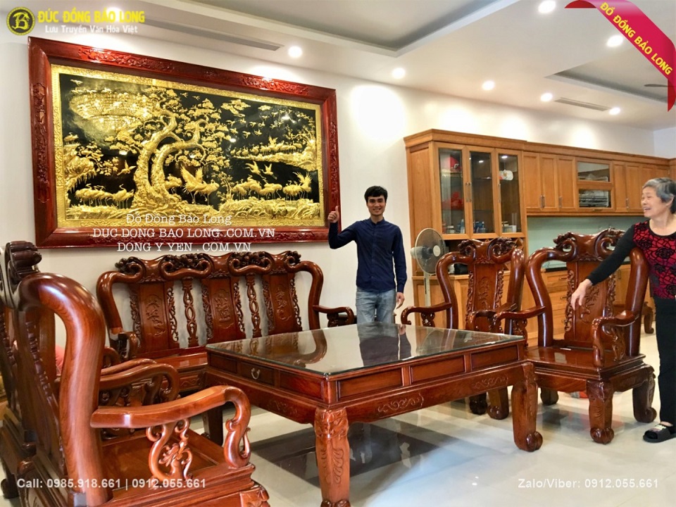 Bức tranh bách hạc quần tùng mạ vàng được lắp đặt tại 1 căn biệt thự