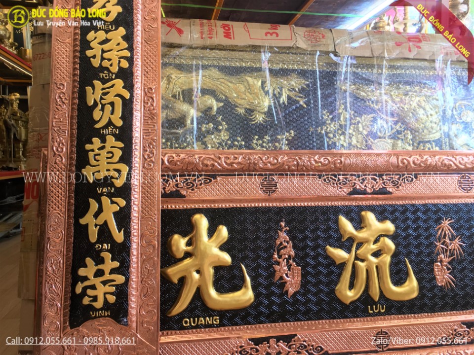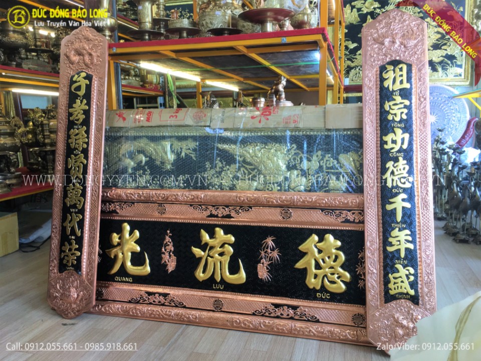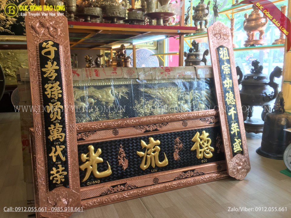 Đại Tự Câu Đối Bằng Đồng Đỏ 1m55 Chữ Thếp Vàng 9999