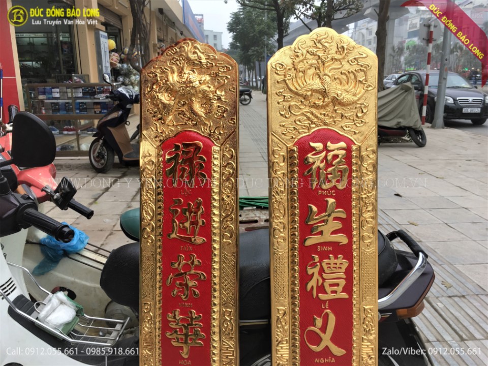 Đại Tự câu đối bằng đồng mạ vàng