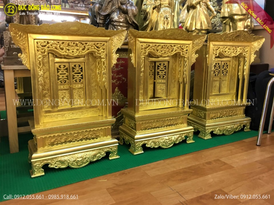 Tại đúc đồng Bảo Long, chúng tôi luôn có những mẫu sản phẩm chất lượng tốt, đa dạng để bạn lựa chọn. Với đội ngũ nghệ nhân nhiều năm kinh nghiệm, sản phẩm của công ty luôn đem tới sự hài lòng cho khác hàng. Chúng tôi có rất nhiều Khám thờ bằng đồng đa dạng, chế tác tinh xảo, tính thẩm mĩ cao. Ngoài ra, với những khách đặt hàng theo yêu cầu, Bảo Long cũng luôn đảm bảo về chất lượng sản phẩm, đưa tới sự hài lòng cho khách hàng.