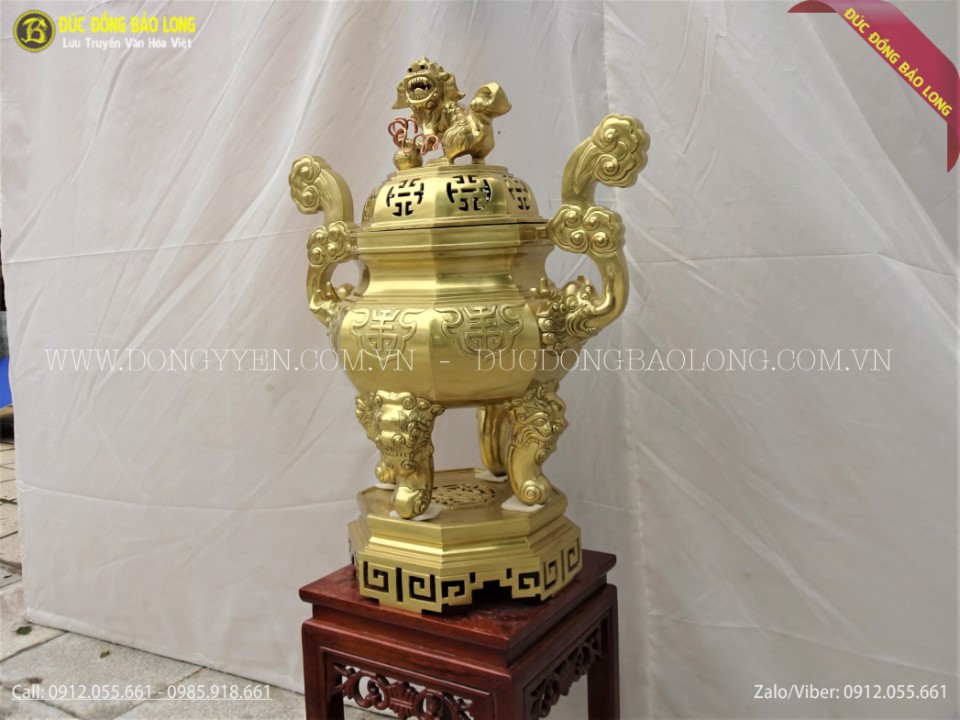 Cơ sở Đúc Đồng Bảo Long vừa hoàn thiện mẫu đỉnh bát giác bằng đồng catut 70cm. Sản phẩm hiện được rất nhiều khách hàng sử dụng để trang trí trên bàn thờ hay tiến cúng cho đền, miếu, nhà thờ,...