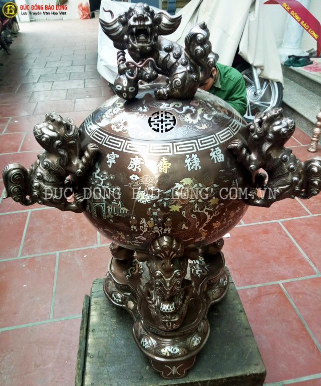 Thời gian trung bình để hoàn thiện 1 quả đỉnh thất lân 1m1 như này rơi vào khoảng 25-30 ngày kể từ khi bắt đầu đúc phôi cho đến khâu hoàn thiện cuối cùng. Thông thường thì Bảo Long sẽ đúc nhiều phôi để sẵn hay khảm chờ từ trước vì thế khi khách cần gấp hoặc đặt hàng ngắn thời gian thì các nghệ nhân của Bảo Long vẫn có thể đáp ứng được.