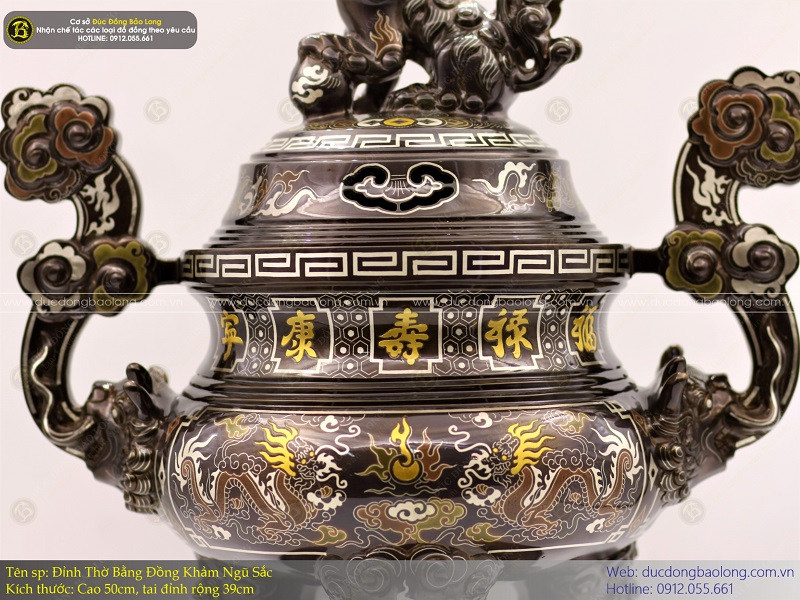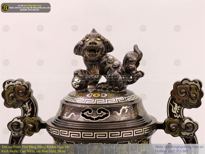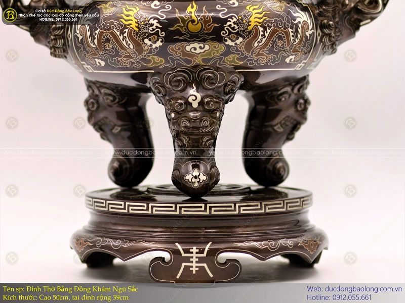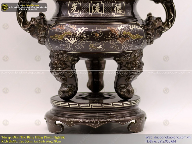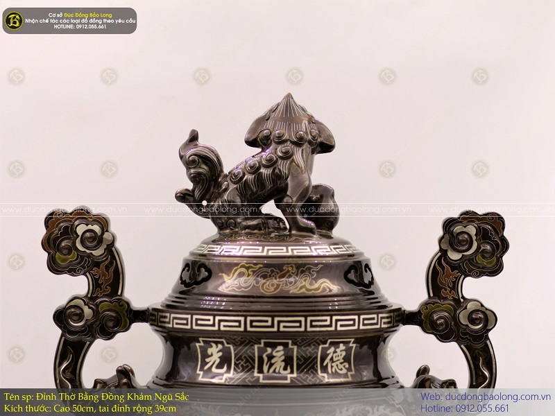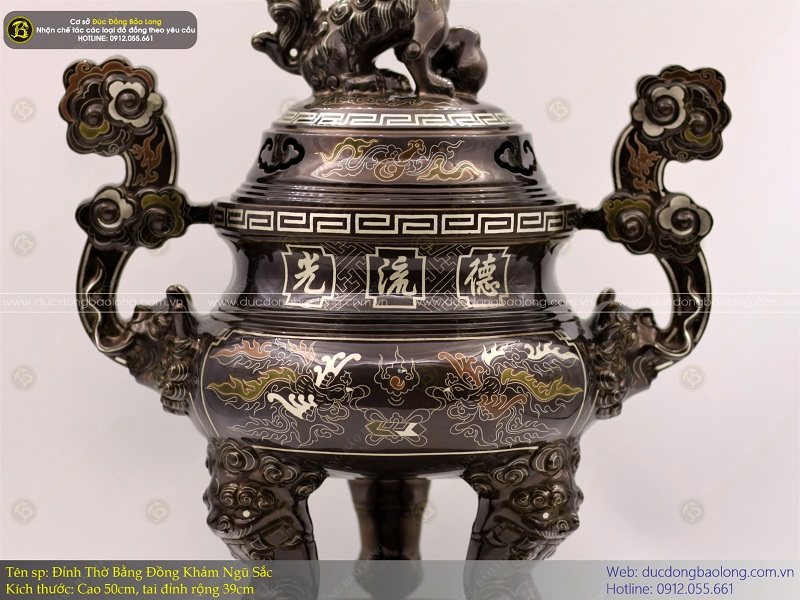 Chi tiết sản phẩm đỉnh thờ bằng đồng 50cm khảm ngũ sắc