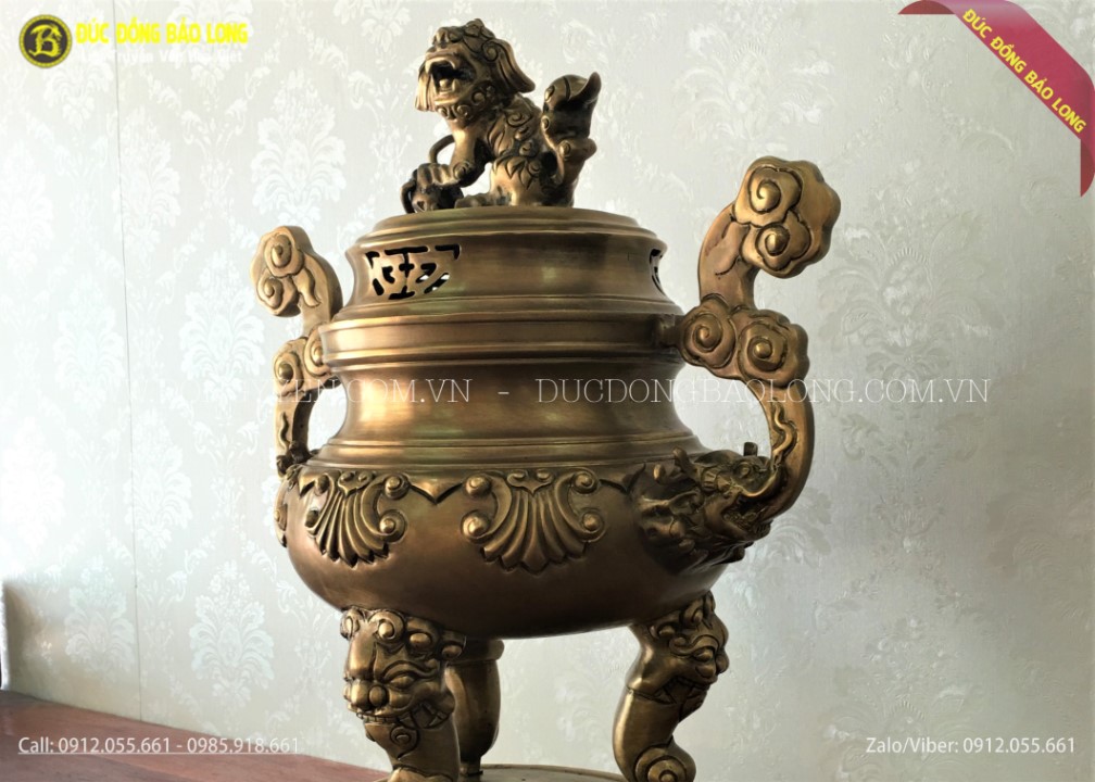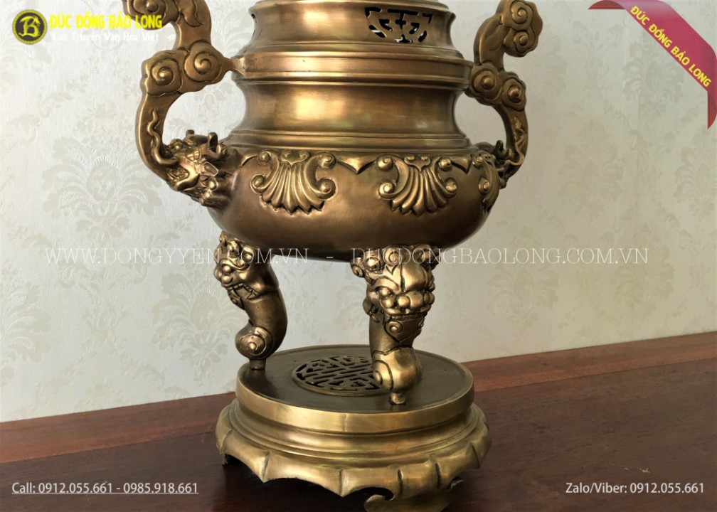 Đỉnh được hun màu giả cổ để giúp đỉnh thêm phần cổ kính cũng như giúp đỉnh sẽ không bị phai màu, càng dùng đỉnh sẽ càng trầm màu xuống sẽ đẹp hơn nhiều