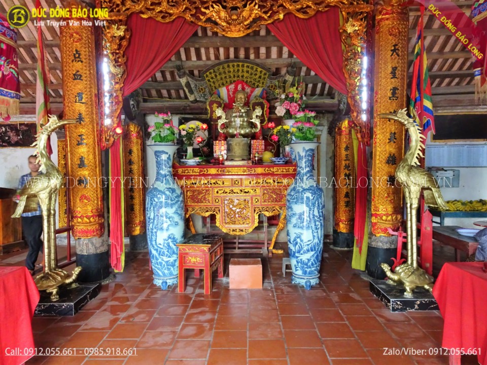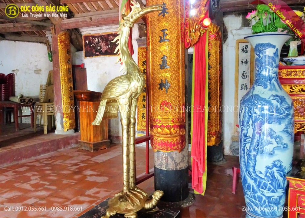 Đôi hạc bằng đồng vàng 1m85 được đặt tại một ngôi đền thờ