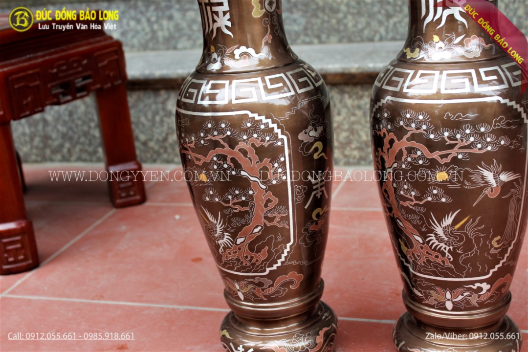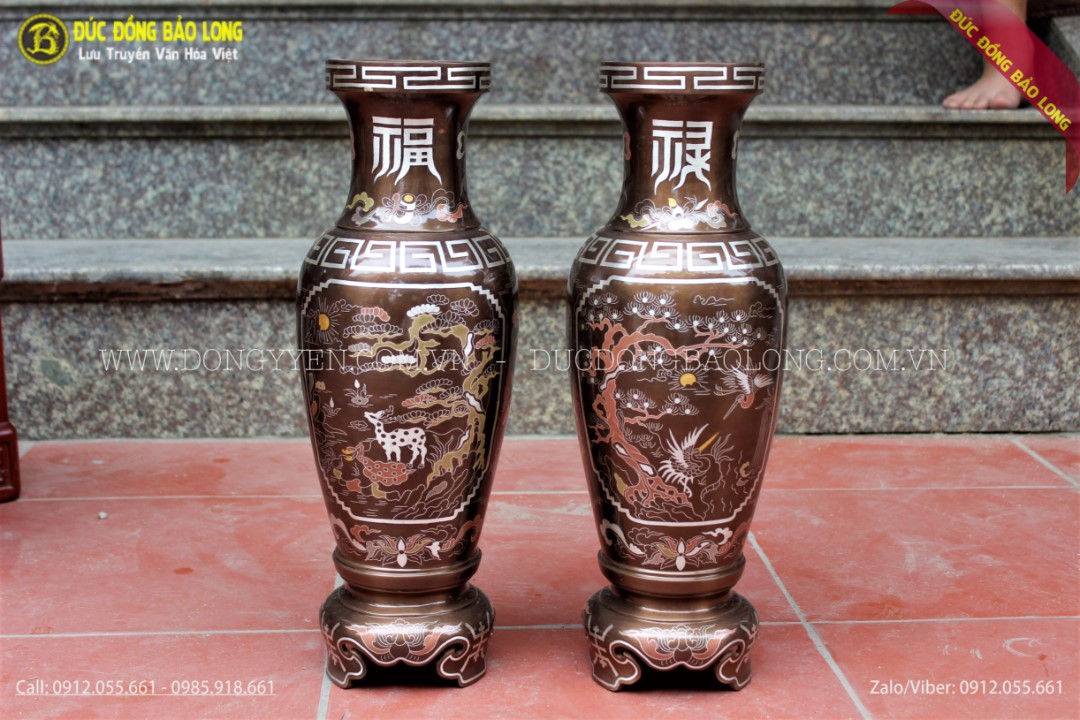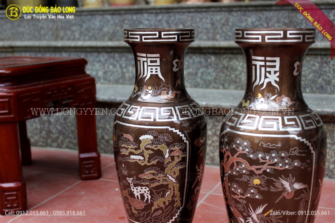 Đôi Lọ Hoa Bằng Đồng Khảm Tam Khí Hàng Đẹp