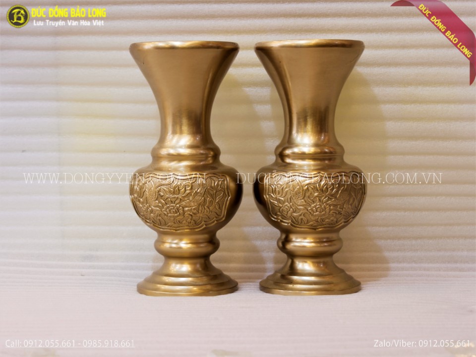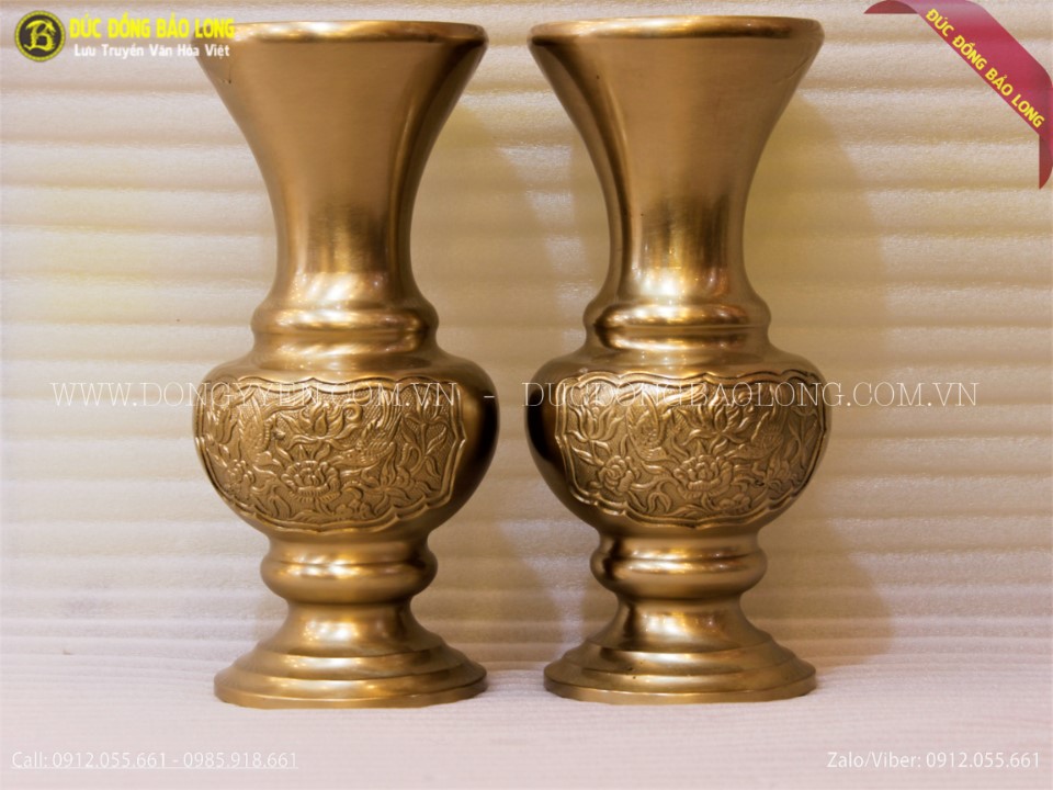 Đôi Lọ Hoa Bằng Đồng Thau Màu Mộc 30cm