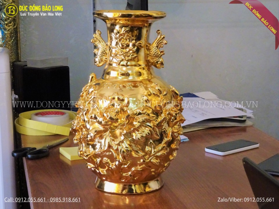 Lọ hoa mẫu đơn cá chép mạ vàng 24k rất sang trọng và đẳng cấp