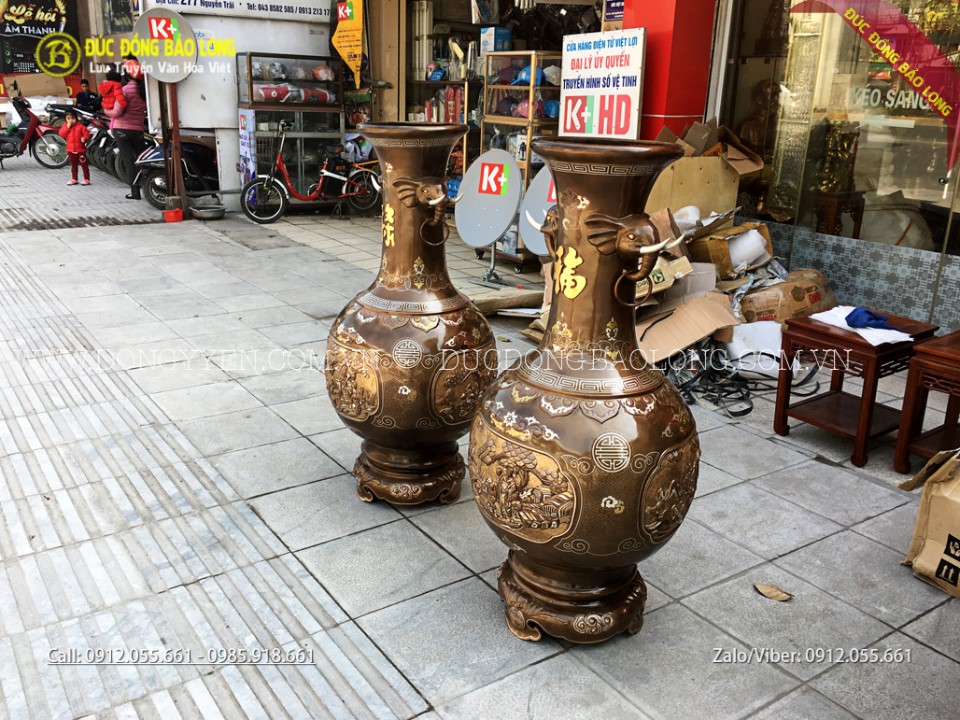 Hiện tại cơ sở Đúc Đồng Bảo Long có nhiều showroom trưng bày và bán hàng, với uy tín của chúng tôi, hiện này chúng tôi đã được khách hàng trong cả nước cũng như nước ngoài đặt mua rất nhiều sản phẩm qua kênh COD (khách hàng nhận hàng và thanh toán tiền mặt) vì vậy quý khách hàng có nhu cầu sở hữu những Đôi Lộc Bình Phúc Lộc Thọ Tai Voi Cao 1m27 như thế này hãy liên hệ ngay cho chúng tôi. Xin cảm ơn!