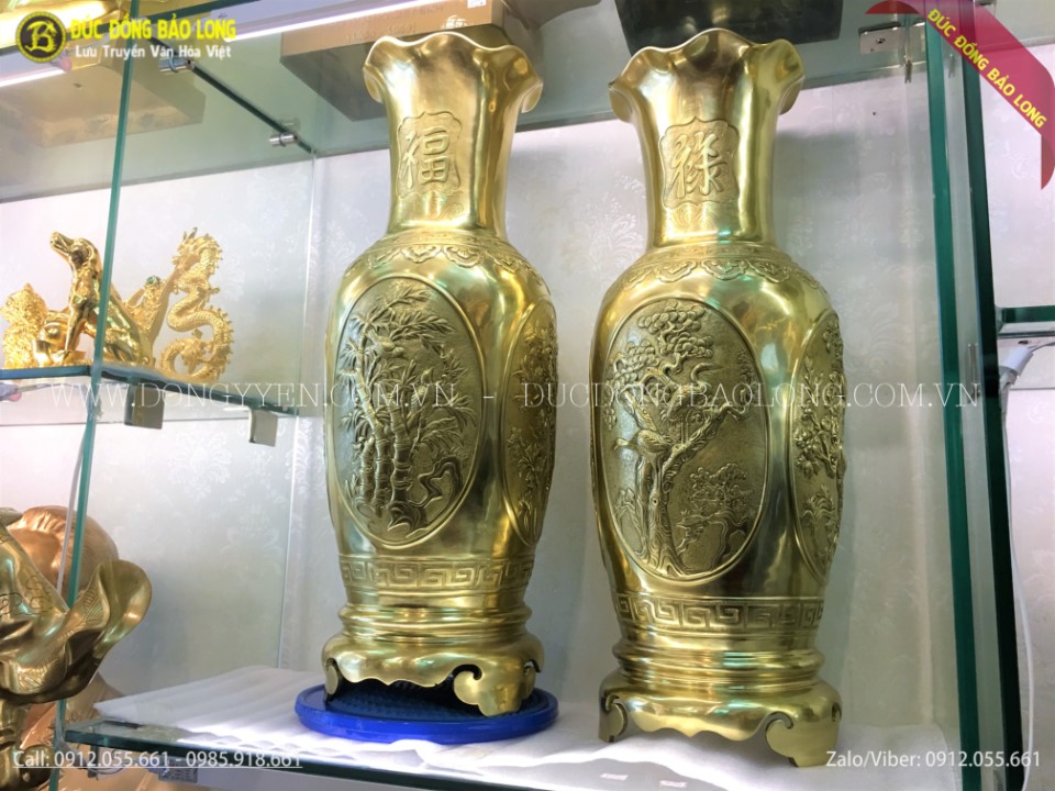 Đôi Lộc Bình Tứ Qúy Bằng Đồng Catut Cao 70cm