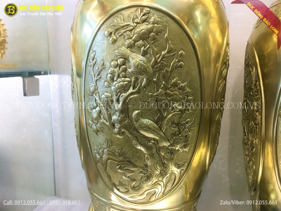 Đôi lọ lộc bình bằng đồng catut chạm hoàn toàn thủ công