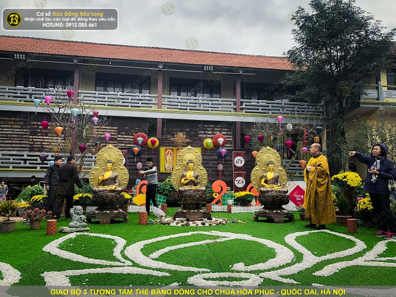 Cơ sở Đúc Đồng Bảo Long vừa hoàn thiện đúc và bàn giao 3 pho tượng Tam Thế bằng đồng 1m33 cho chùa Hòa Phúc tại xã Hòa Thạch, huyện Quốc Oai, TP. Hà Nội.
