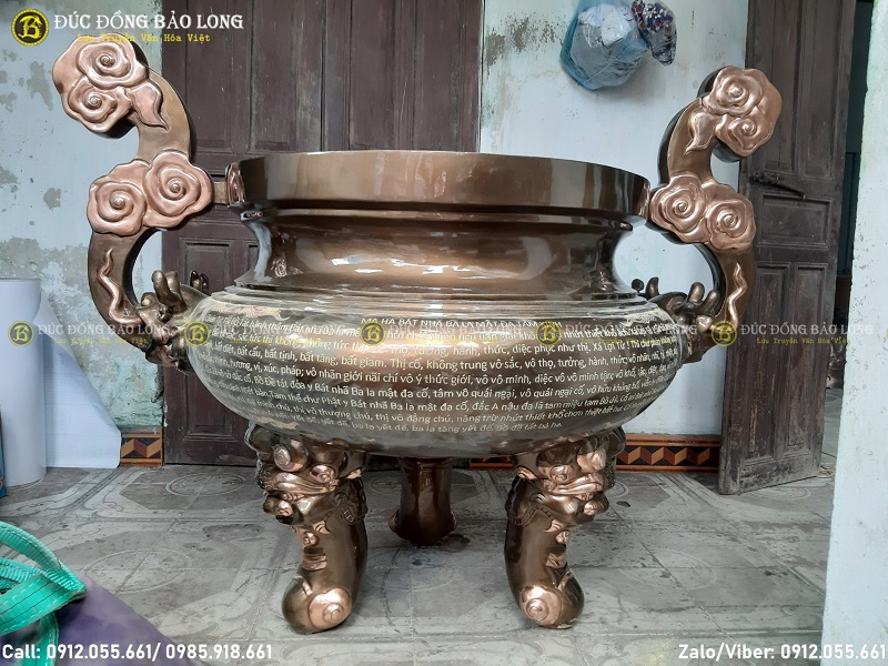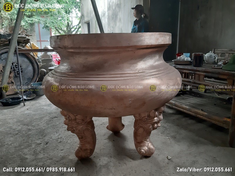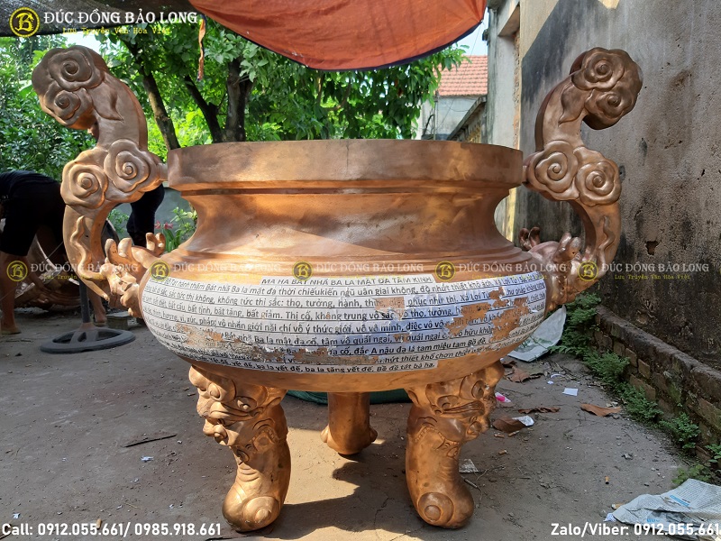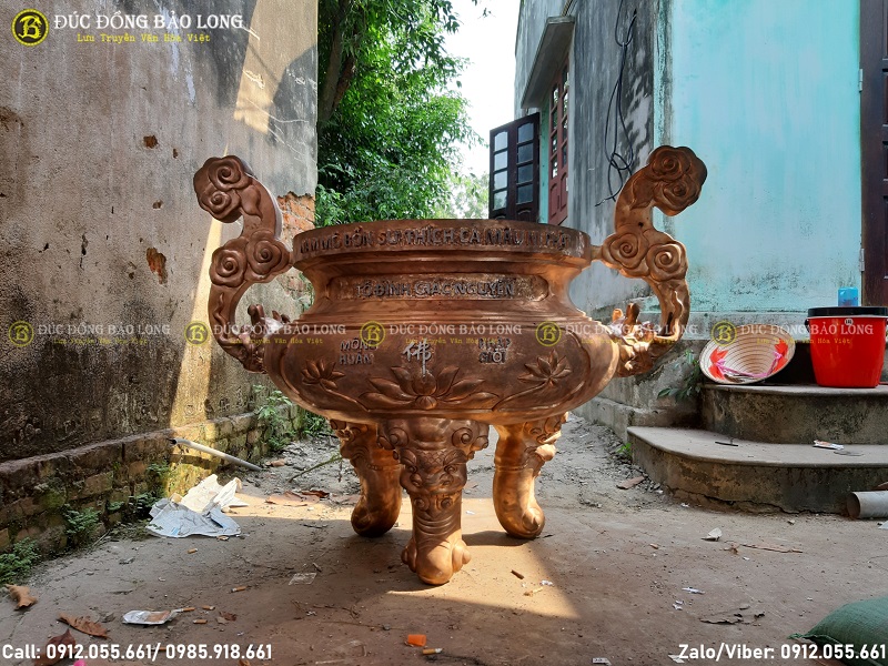 Cả 4 chiếc Lư Hương Đồng cho chùa Giác Nguyên đều được đúc với hình dáng, mẫu mã như nhau. - Mọi quy trình chế tác đều được đúc hoàn toàn thủ công từ nguyên liệu đồng đỏ thanh khiết.