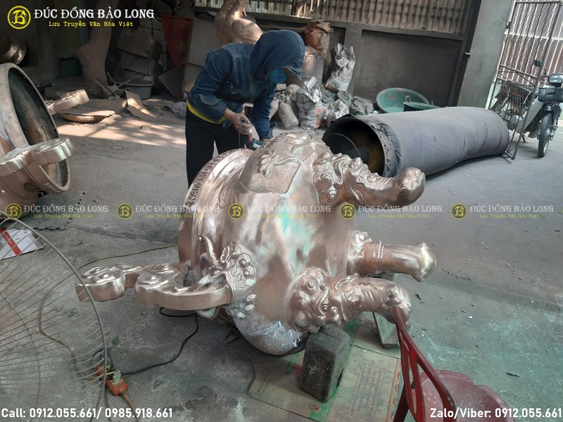 - Dỡ khuôn, làm nhẫn bề mặt: Khi vừa đúc đồng xong, người thợ sẽ tiến hành công đoạn làm nguội, dỡ khuôn, dùng các dụng cụ chuyên dụng làm nhẵn bề mặt, loại bỏ những chi tiết thừa.