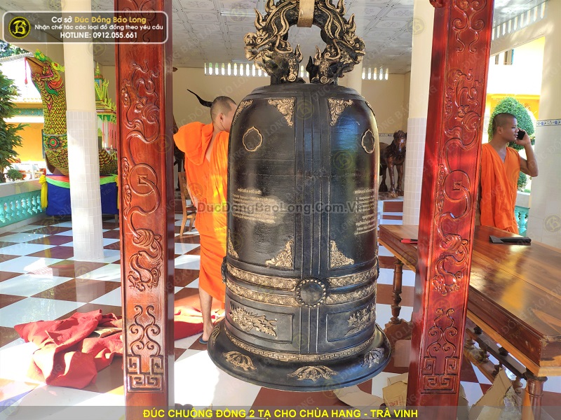 Vừa qua, cơ sở Đúc Đồng Bảo Long tiến hành đúc chuông 2 tạ cho chùa Hang, Châu Thành, Trà Vinh. Qủa chuông đồng được đúc trực tiếp tại xưởng, mọi quy trình đúc đều được kiểm duyệt rất chặt chẽ. Chuông được đúc thủ công từ nguyên liệu đồng đỏ thanh khiết. Chuông đồng khi xuất xưởng đều thỏa mãn về hình dáng và âm thanh rất hay.