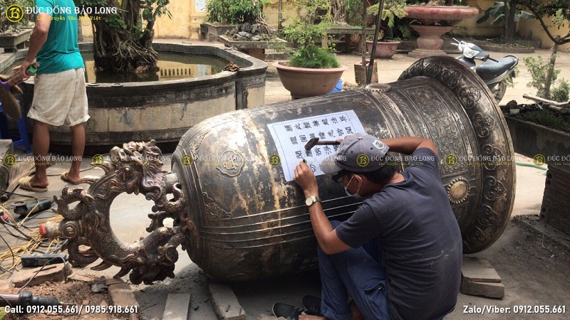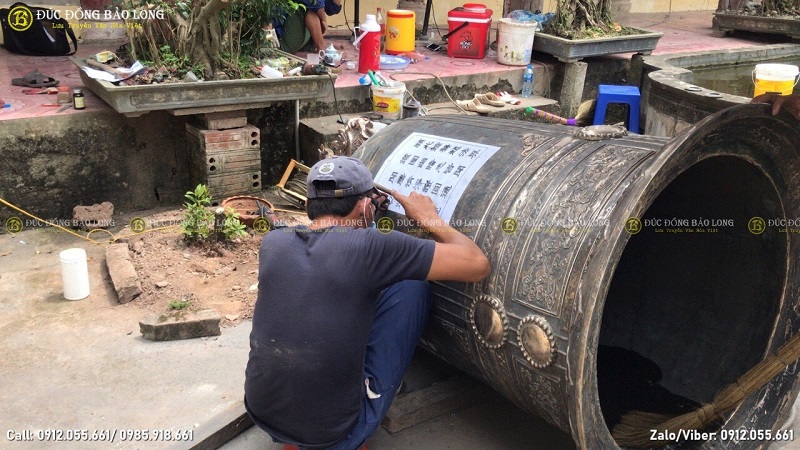 Đục bài minh chuông - khắc chữ lên chuông