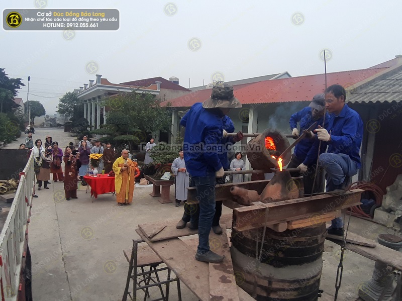 Những ngày giáp tết Canh Tý 2020, cơ sở Đúc Đồng Bảo Long vui mừng đón chào sư thầy cùng các phật tử chùa Tân Sơn về tận xưởng để dự lễ đúc Đại Hồng Chung 500kg.