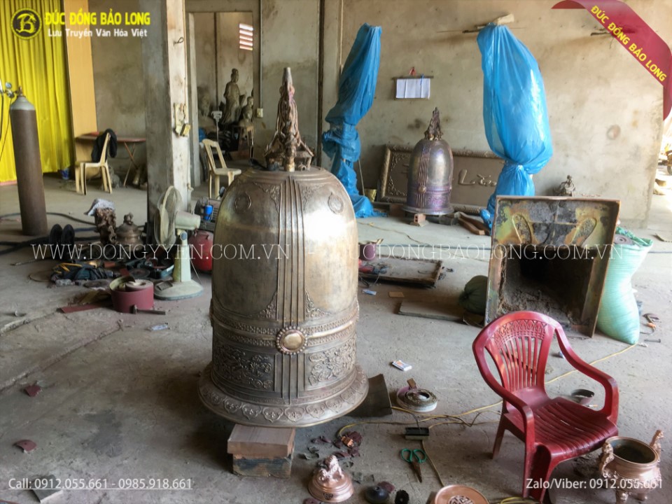 Cơ sở Tranh Đồng Bảo Long vừa hoàn thiện tranh đúc đại hồng chung cho nhà chùa giá treo chuông bằng đồng. Muốn đúc chuông đồng thành công điều quan trọng nhất là tiếng chuông phải hay, trầm bổng, tạo âm thanh nghe vừa tai. Do vậy, đúc chuông đồng đòi hỏi nghệ nhân phải có kinh nghiệm lâu năm, kỹ thuật điêu luyện, tỷ lệ pha chế hợp lý, nguyên liệu luôn phải đạt chuẩn không chứa các tạp chất.