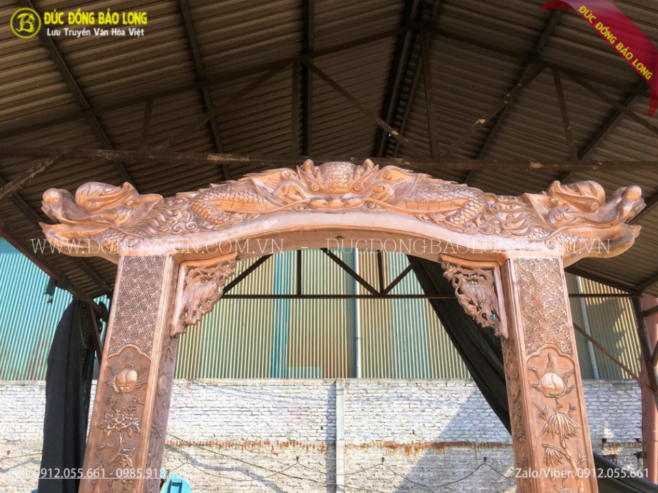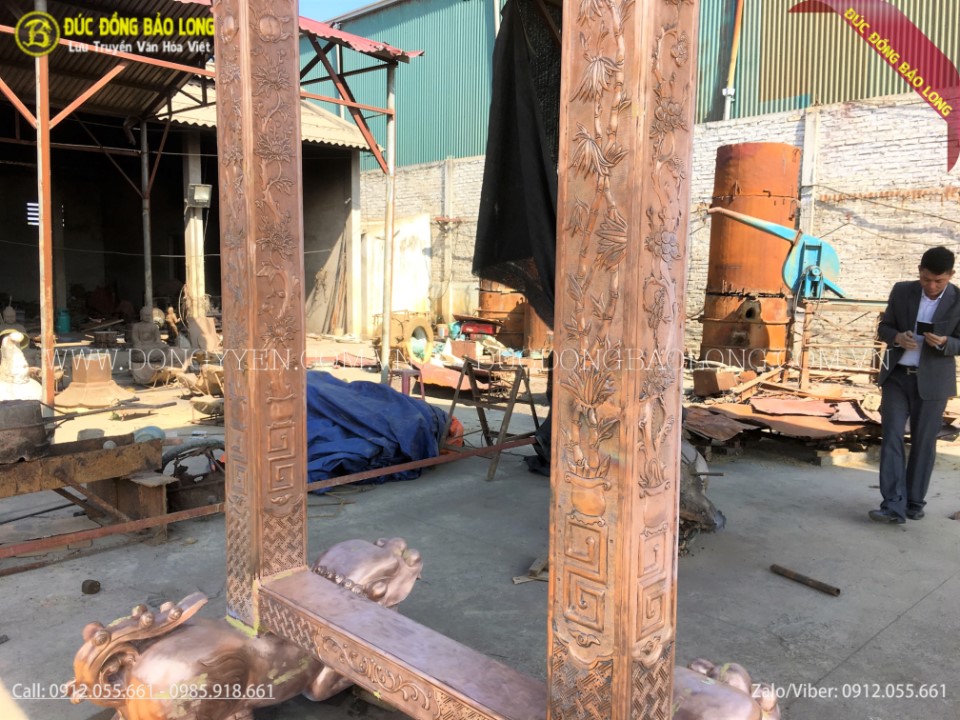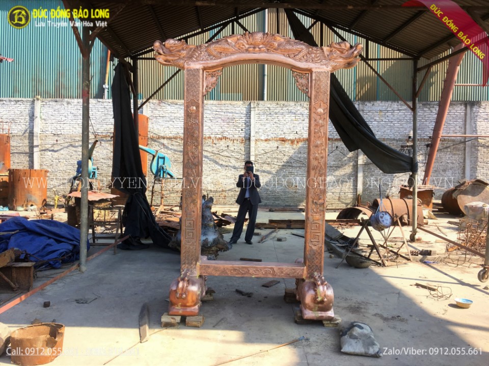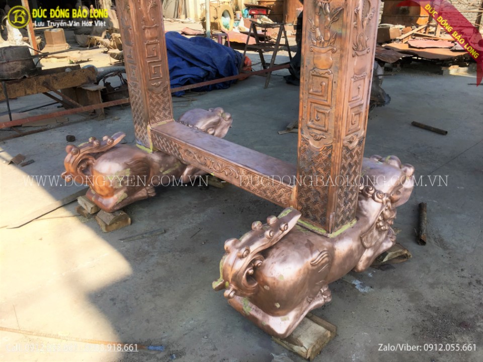 Giá treo chuông được đúc hoàn toàn thủ công từ nguyên liệu đồng đỏ thanh khiết