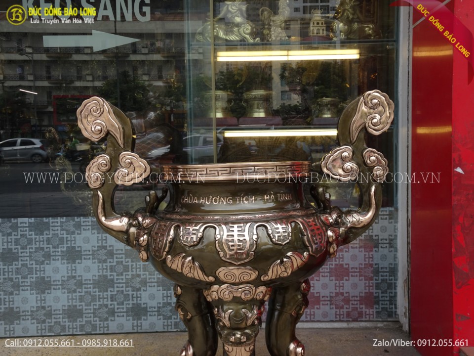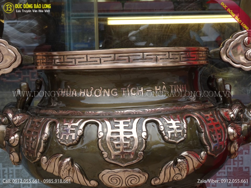 Lư đồng chữ thọ dơi mây cao 95cm đúc cho chùa hương tích Hà Tĩnh