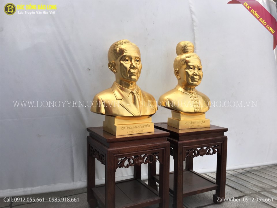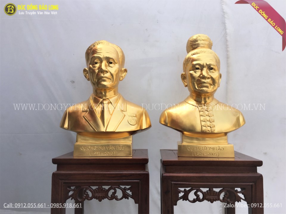 Tượng chân dung cụ ông cụ bà được đúc hoàn toàn thủ công theo phương pháp truyền thống, mọi công đoạn đều làm bằng tay. Nguyên liệu đúc là loại đồng đỏ thanh khiết. Tượng chân dung cụ ông cụ bà được tạo mẫu bằng khuôn đất, sau khi được kiểm duyệt từ phía gia đình, chúng tôi chuyển sang tạo mẫu thạch cao và đúc khuôn đồng thành phẩm. Tượng được hoàn thiện sửa nguội đánh bóng bề mặt, khắc tên tuổi, năm sinh, năm mất tại chân đế pho tượng. Tượng có đầy đủ vai áo, huy hiệu, cúc áo,....