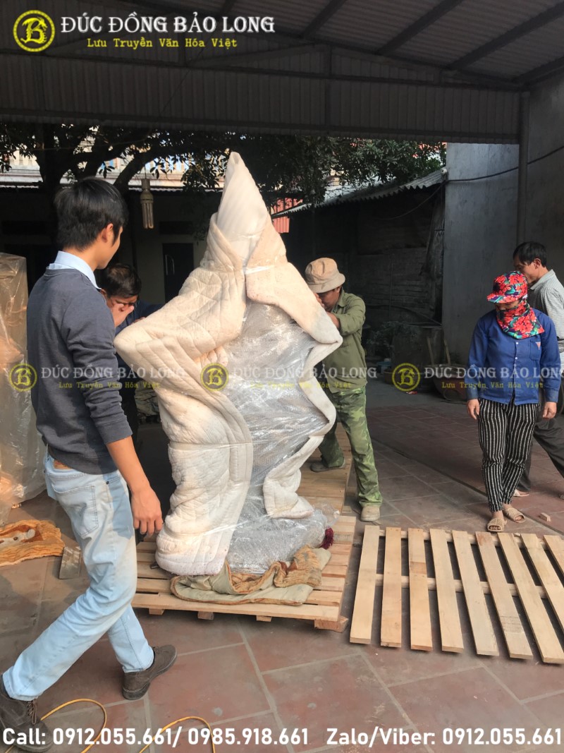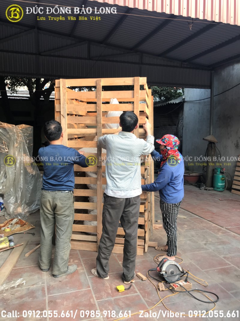 Tượng được đóng kiện bằng gỗ cẩn thận